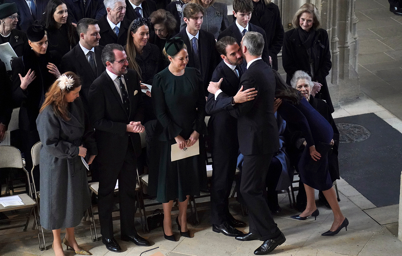 Η βασίλισσα Καμίλα έφτασε μαζί με την τέως βασίλισσα Άννα Μαρία. Στην τελετή βρίσκεται και η πριγκίπισσα Άννα, η οποία είχε εκπροσωπήσει τη βασιλική οικογένεια της Βρετανίας και στην κηδεία του τέως βασιλιά.
