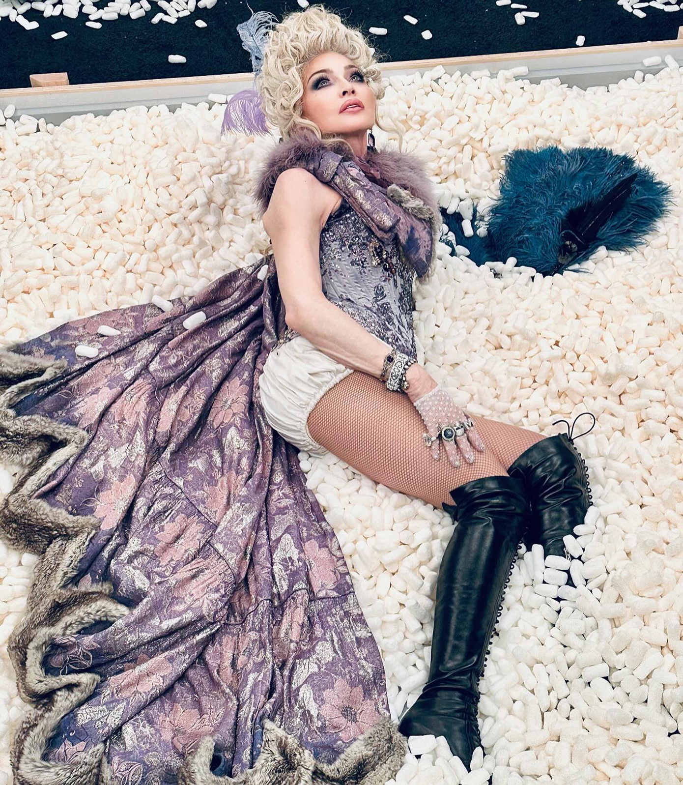 Από το διάσημο πάρτι Vanity Fair, που γίνεται μετά τα Όσκαρ, δεν θα μπορούσε να λείψει η βασίλισσα της ποπ, Μαντόνα. Η τραγουδίστρια μοιράστηκε με το κοινό της μια σειρά από φωτογραφίες στο Instagram, όπου φαίνεται πως επέλεξε για ακόμα μια φορά μια εκκεντρική εμφάνιση με πούπουλα, γούνα και γυαλιστερές μαύρες μπότες. Τo ιδιαίτερο λουκ των μαλλιών της προκάλεσε, επίσης, συζητήσεις, καθώς πιθανότατα φορούσε περούκα.