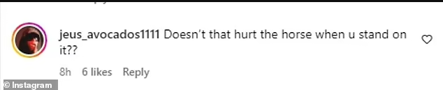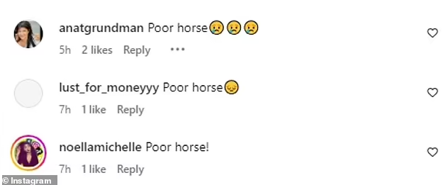 «Καημένο άλογο» «Δεν πονάει το άλογο όταν στέκεσαι πάνω του;», «Κατέβα από το άλογο» είναι κάποια από τα σχόλια των αγανακτισμένων χρηστών, όπως αναφέρει η Daily Mail.