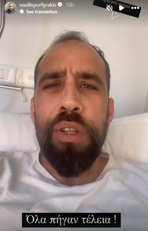 «Σας ευχαριστώ όλους για το ενδιαφέρον. Μια απλή επέμβαση βουβωνοκήλης ήταν και όλα πήγαν μια χαρά. Σας ευχαριστώ όλους για τα μηνύματα στήριξης, αγάπης. Είναι όλα κομπλέ», αναφέρει στο βίντεο ο Βασίλης Πορφυράκης.