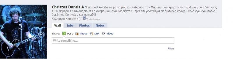 Ενδεικτικό του πόσο ευτυχισμένος είναι ο Χρήστος Δάντης, είναι το μήνυμα που ανήρτησε στην προσωπική του σελίδα στο facebook.