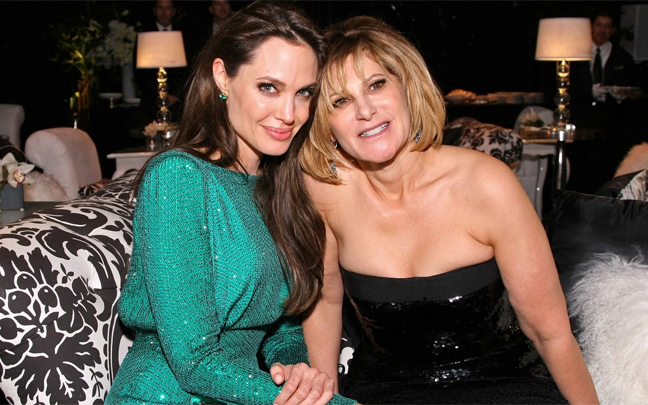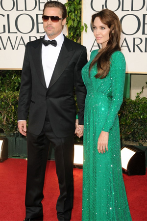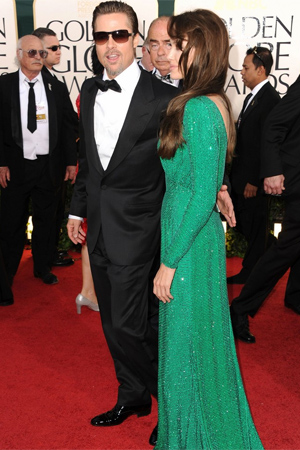 Λίγες ώρες νωρίτερα είχε περπατήσει στο κόκκινο χαλί δίπλα στο σύντροφό της Μπραντ Πιτ, μέσα στην καταπράσινη γεμάτη με κρύσταλλα swarowski Versace τουαλέτα της, τις Ferragamo γόβες της και τα Robert Procop κοσμήματά της.