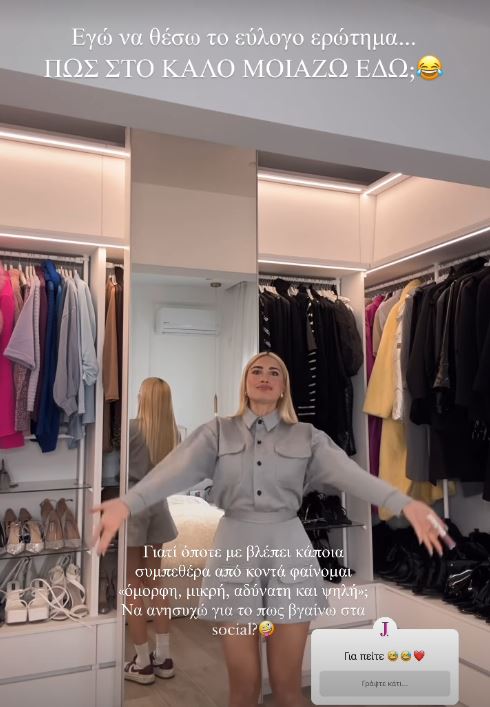 Πιο συγκεκριμένα η influencer ανεβάζοντας ένα βίντεο στο Instagram ρώτησε του διαδικτυακούς της φίλους σχετικά με την εικόνα που βγάζει προς τα έξω, μέσω τον κοινωνικών δικτύων, αφού όπως ανέφερε κάθε φορά που τη συναντά κάποιος στο δρόμο της λέει ότι φαίνεται εντελώς διαφορετική και ότι διαφέρει σημαντικά σχετικά το πώς παρουσιάζεται μέσω του Instagram.