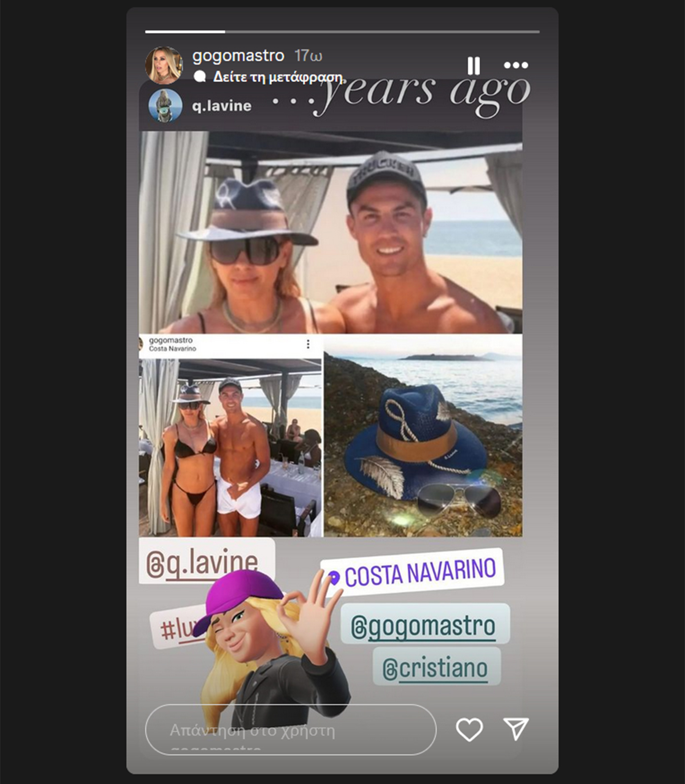 Η Γωγώ Μαστροκώστα δημοσίευσε στo Ιnstagram φωτογραφίες της από παλαιότερη συνάντηση που είχε τυχαία με τον Κριστιάνο Ρονάλντο σε διακοπές που έκανε στο ξενοδοχείο «Costa Navarino».