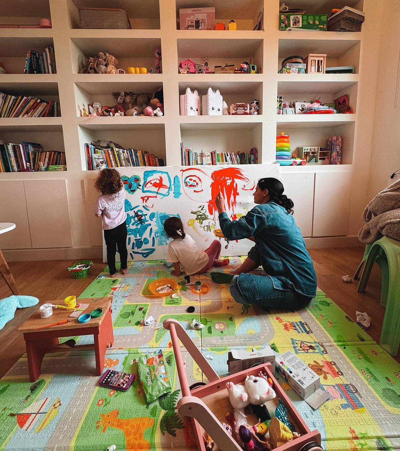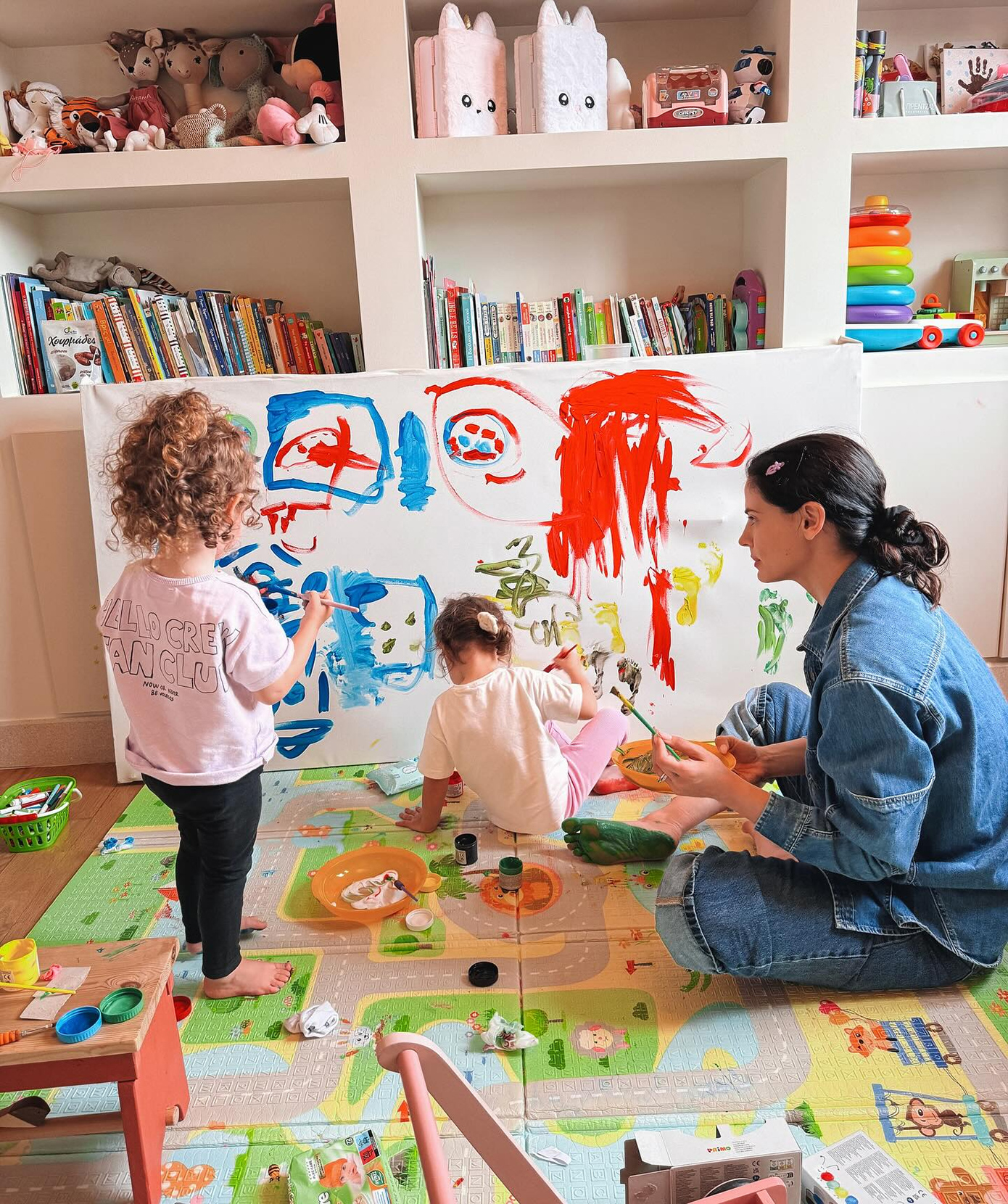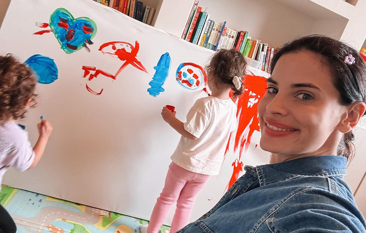 Το βράδυ της Τρίτης η σύζυγος του Σάκη Τανιμανίδη πόζαρε στην κάμερα έχοντας μπογιές στο πρόσωπό της, ενώ πίσω της εμφανίζονται οι κόρες της να ζωγραφίζουν σε ένα καμβά με τα πινέλα και τα χέρια τους.