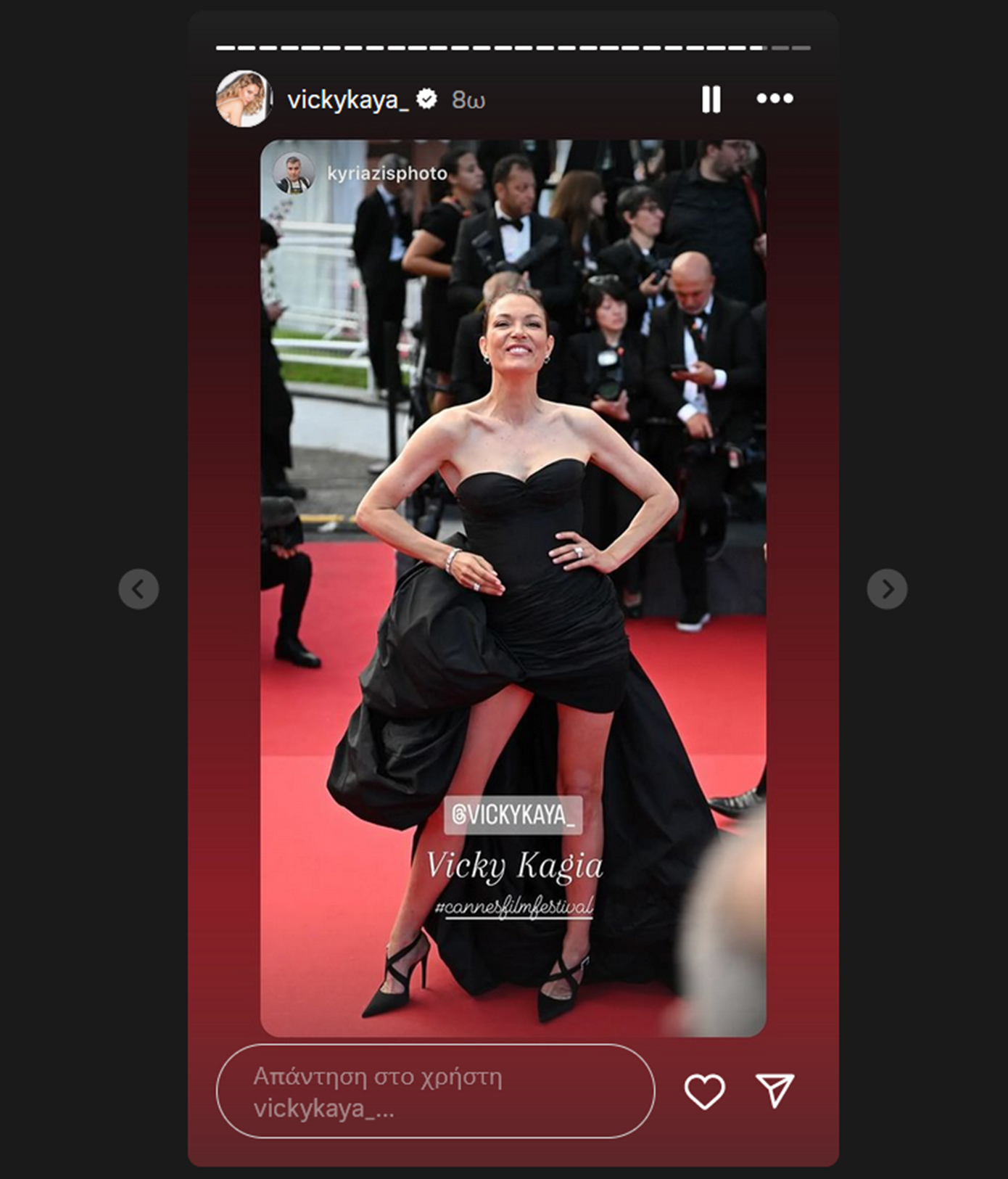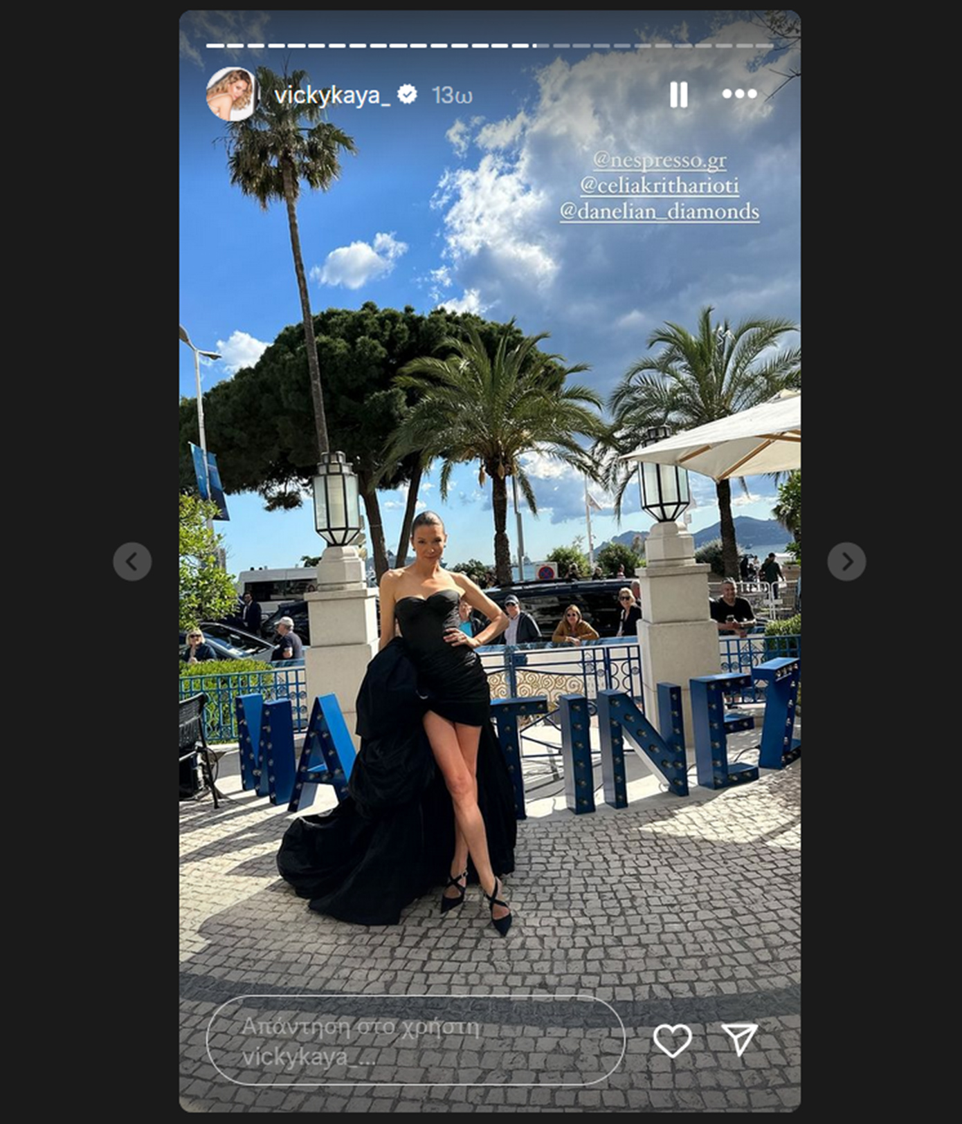 Είδαμε ήδη τη Δούκισσα Νομικού με ένα ολόχρυσο φόρεμα και πριν από λίγες ώρες η Βίκυ Καγιά ενημέρωσε τους followers στο Instagram ότι βρίσκεται και εκείνη στις Κάννες για το φεστιβάλ κινηματογράφου, δημοσιεύοντας στο προφίλ της στο Instagram φωτογραφίες και βίντεο.