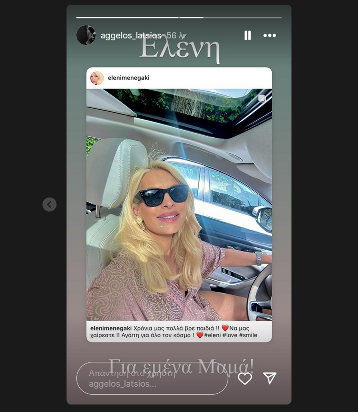 Την ανάρτησή της αυτή έκανε repost ο γιος της, Άγγελος Λάτσιος κι έγραψε: «Ελένη! Για εμένα μαμά»!