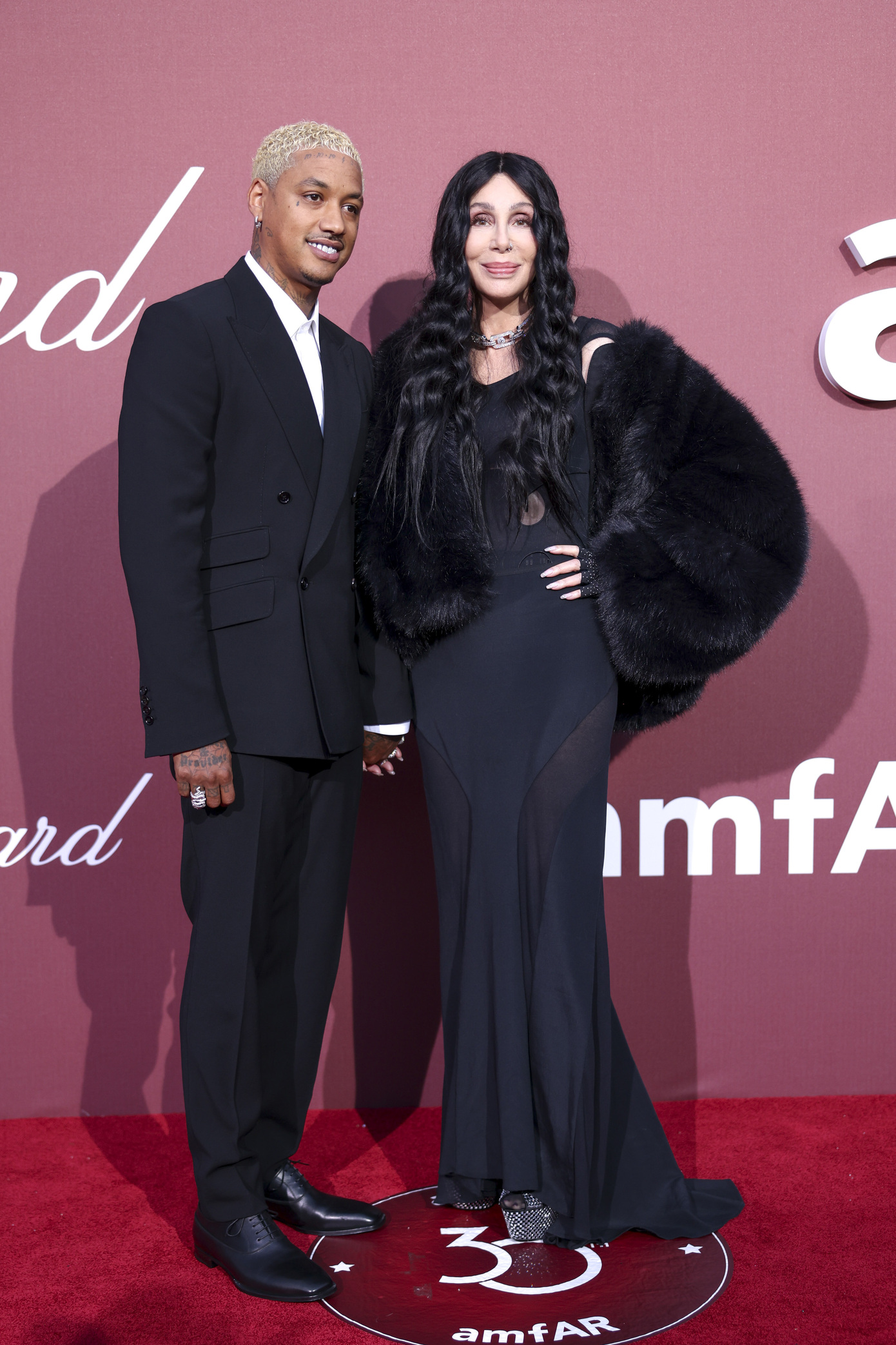 Η 78χρονη Σερ περπάτησε με τον 38χρονο σύντροφό της, τον μουσικό Αλεξάντερ Έντουαρτς, στο κόκκινο χαλί του amfAR γκαλά στις Κάννες.