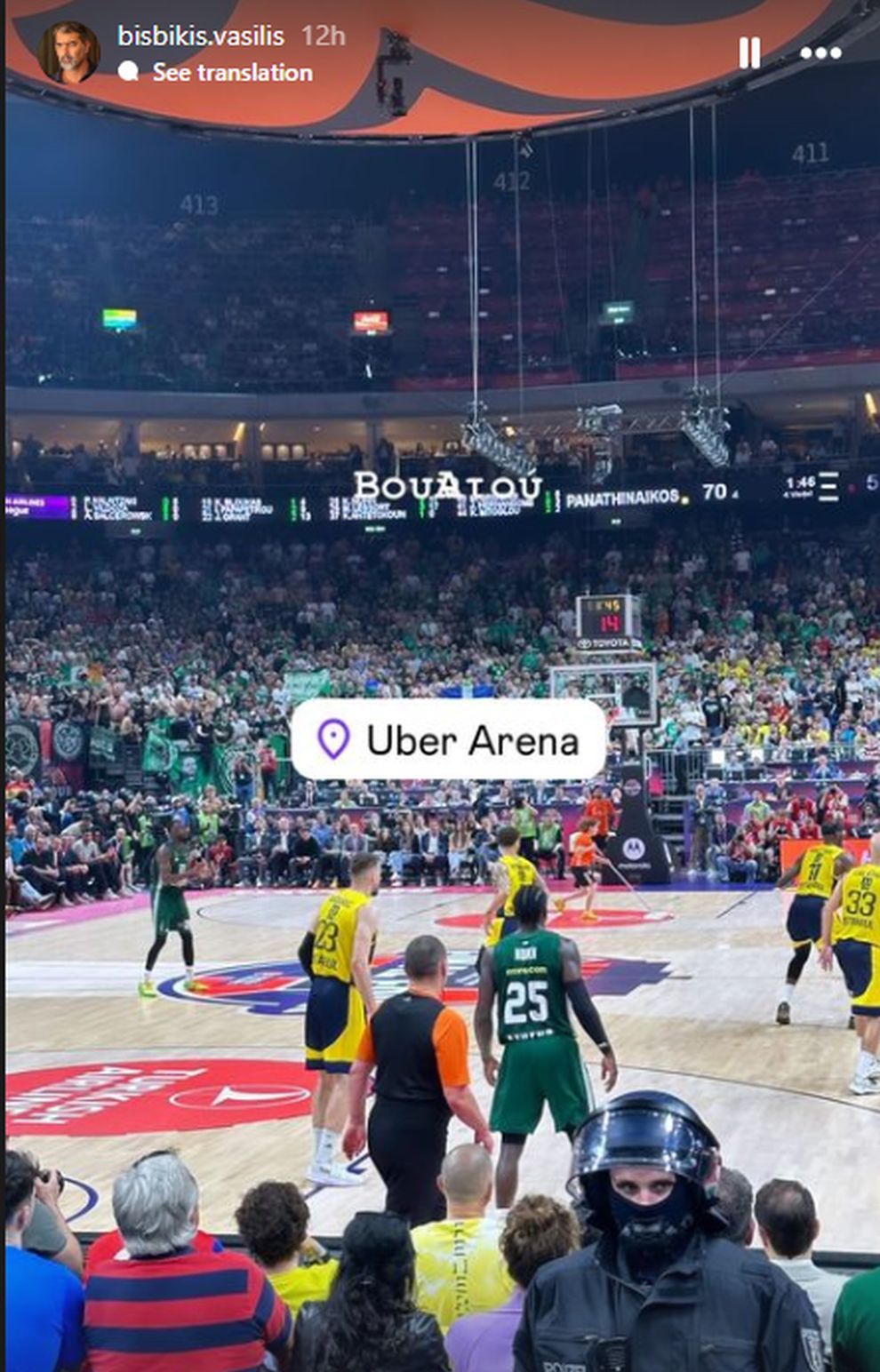 Ο ηθοποιός έβγαλε μερικές φωτογραφίες μέσα από το γήπεδο Uber Arena στο Βερολίνο, όπου και είδε την ομάδα του να κερδίζει και να περνάει στον τελικό της Euroleague.