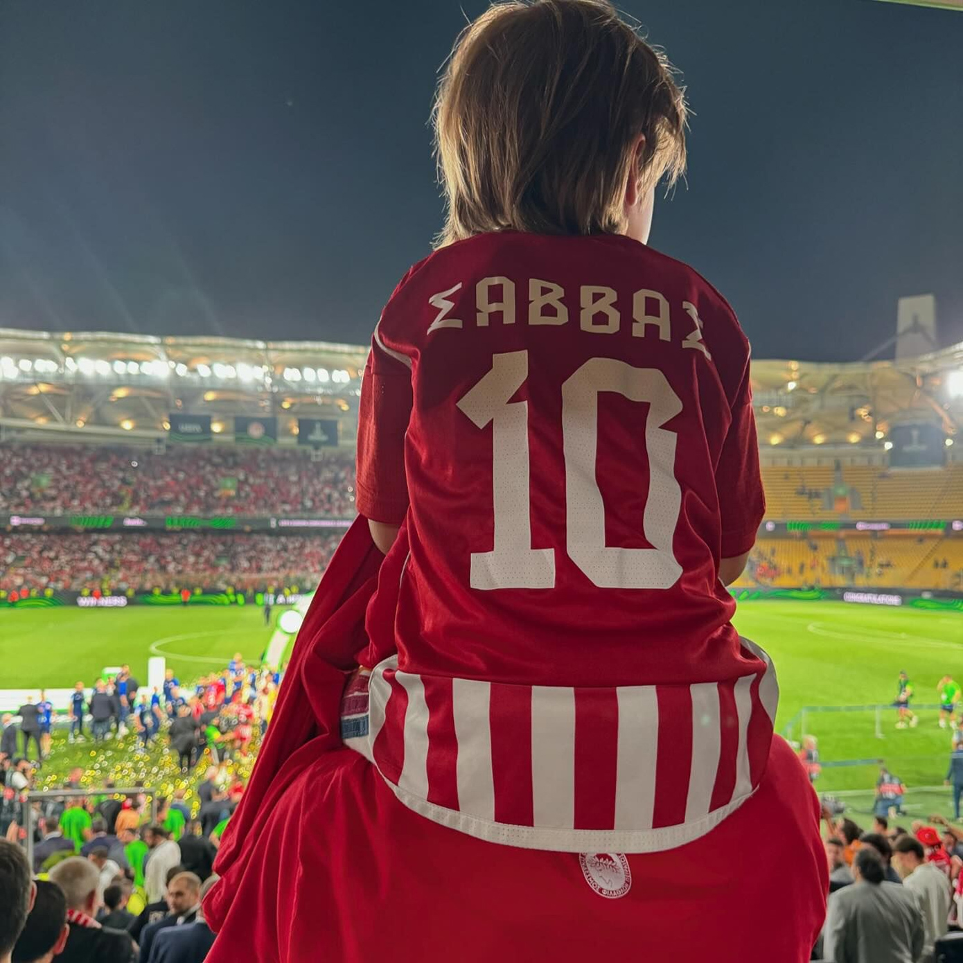 O γιος της Δούκισσας Νομικού και του Δημήτρη Θεοδωρίδη, Σάββας, ήταν χθες μεταξύ των θεατών που απόλαυσαν από κοντά τον τελικό του Ολυμπιακού με τη Φιορεντίνα.