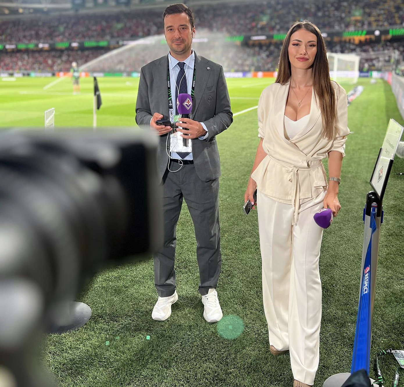 Τις εντυπώσεις στην OPAP Arena και τον τελικό του Conference League έκλεψε η ιταλίδα δημοσιογράφος Ροσέλα Ρόζα Πετρίλο.