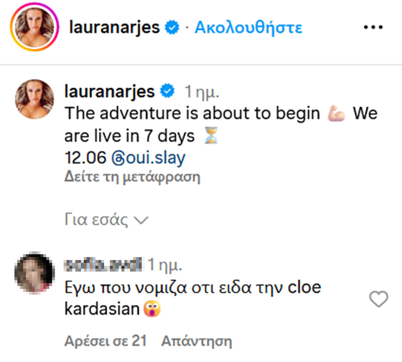 Η Λάουρα Νάργες δημοσίευσε στο Instagram μία φωτογραφία της για να ανακοινώσει στους διαδικτυακούς της φίλους ότι στις 12 Ιουνίου θα λανσάρει το δικό της brand με μαγιό.