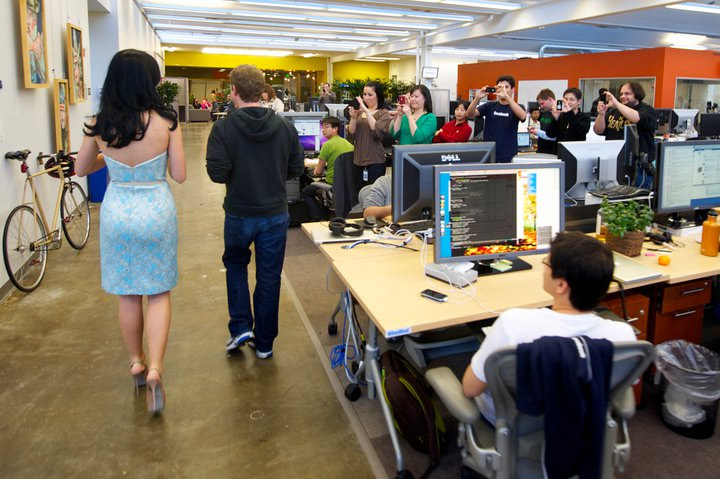Πάντως, αντικείμενο σχολιασμού έγινε το γεγονός ότι ο Zuckerberg εμφανίστηκε με αθλητικά παπούτσια, ενώ η Perry με πανύψηλα τακούνια και του «έριχνε» λιγάκι!