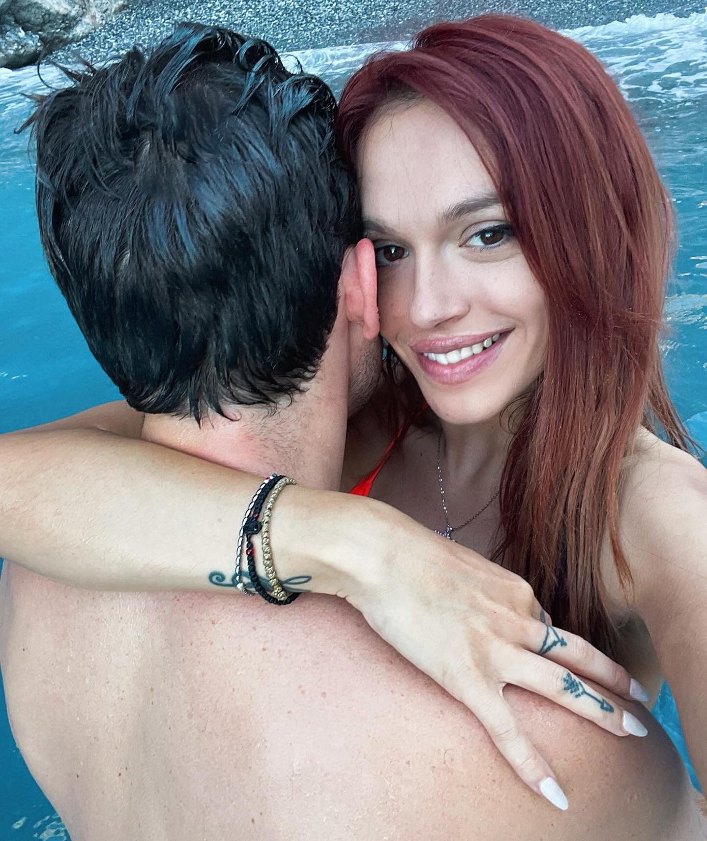 Με μια selfie, η τραγουδίστρια φωτογράφισε τον εαυτό της, όσο την είχε αγκαλιά ο αγαπημένος της. Γιώργος Αμούτζας, μέσα στη θάλασσα και χαμογέλασε στον φωτογραφικό φακό.