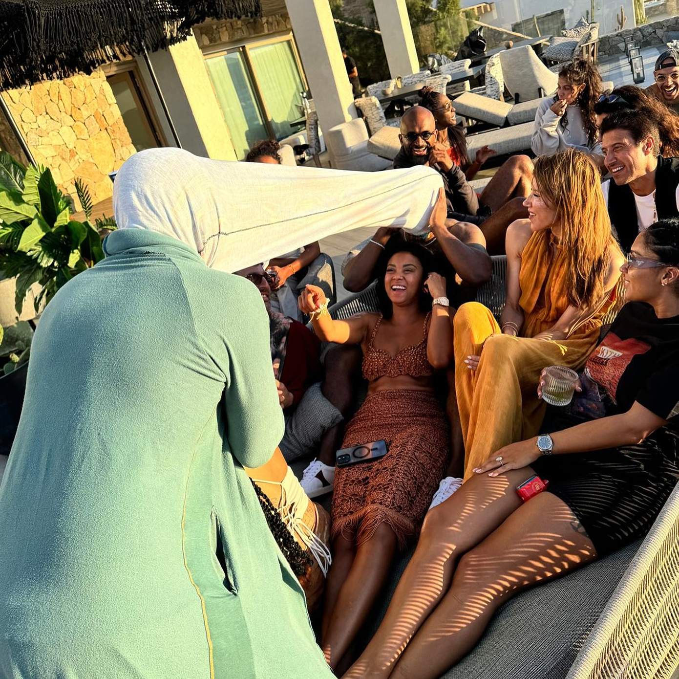 Στην τελευταία φωτογραφία, οι καλεσμένοι του ποζάρουν με φόντο τη θάλασσα.