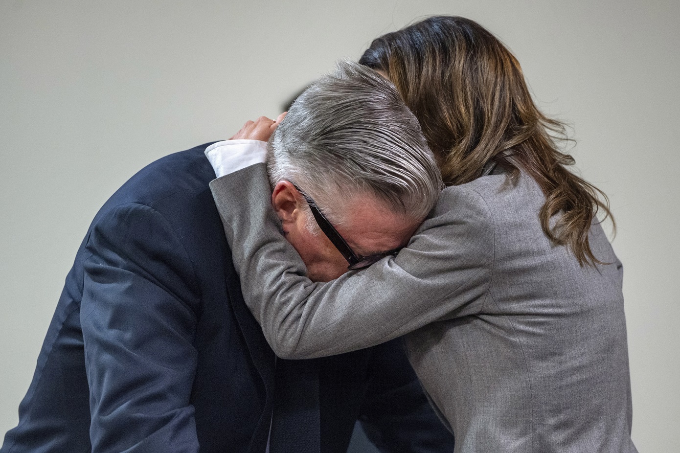 Ο Άλεκ Μπάλντουιν ξέσπασε σε κλάματα και αγκάλιασε τη σύζυγό του καθώς η υπόθεση της ανθρωποκτονίας εξ αμελείας εναντίον του απορρίφθηκε ανατρέποντας όλα τα δεδομένα.