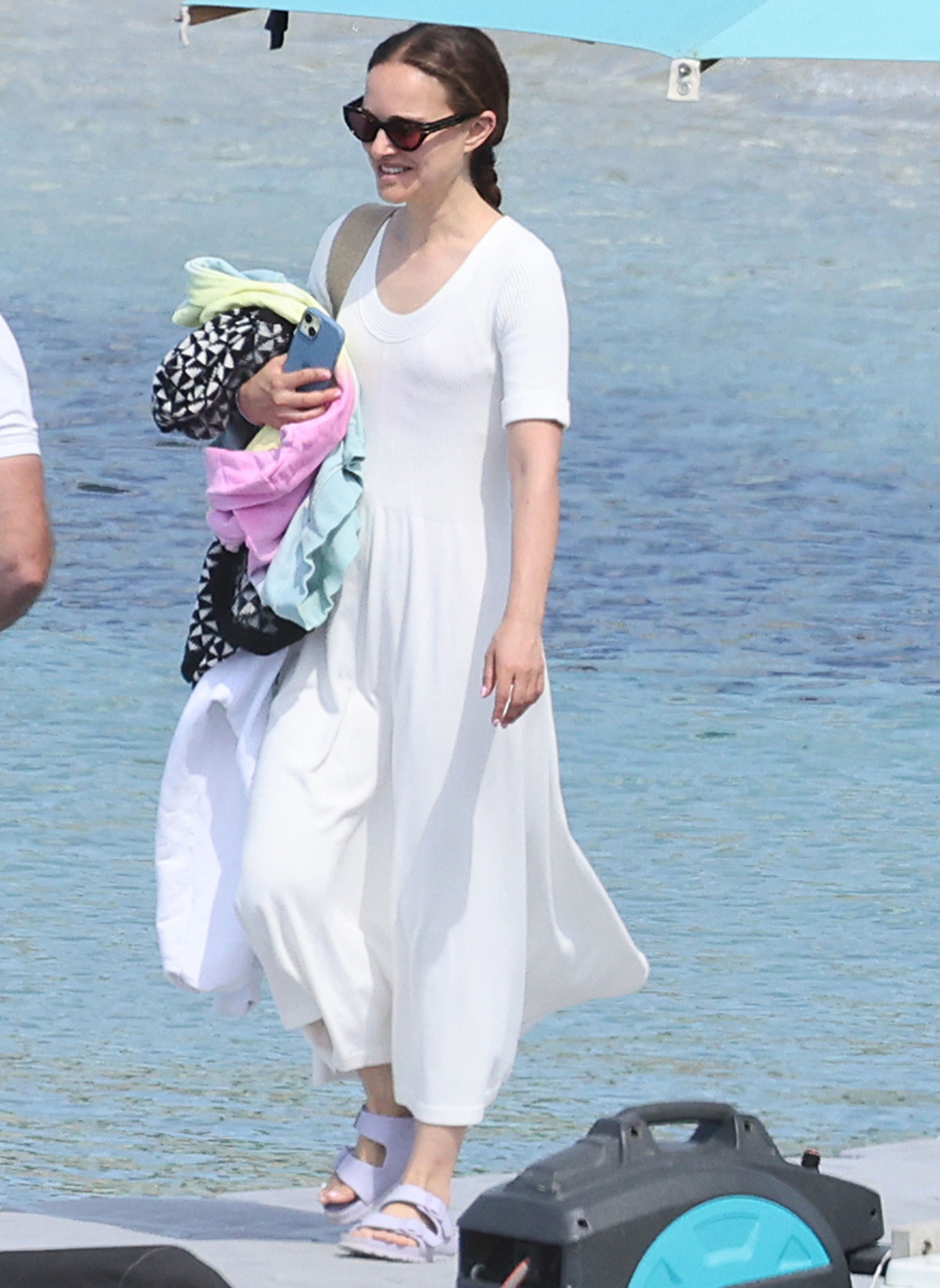 Ο φακός απαθανάτισε την Νάταλι Πόρτμαν στην παραλία με λευκό φόρεμα και σανδάλια από καουτσούκ στο χρώμα της λεβάντας. Σημειώνεται ότι η Νάταλι Πόρτμαν ύστερα από έντεκα χρόνια γάμου πήρε διαζύγιο από τον Μπέντζαμιν Μιλπιέ τον Μάρτιο, μετά από φήμες ότι την απατούσε.
