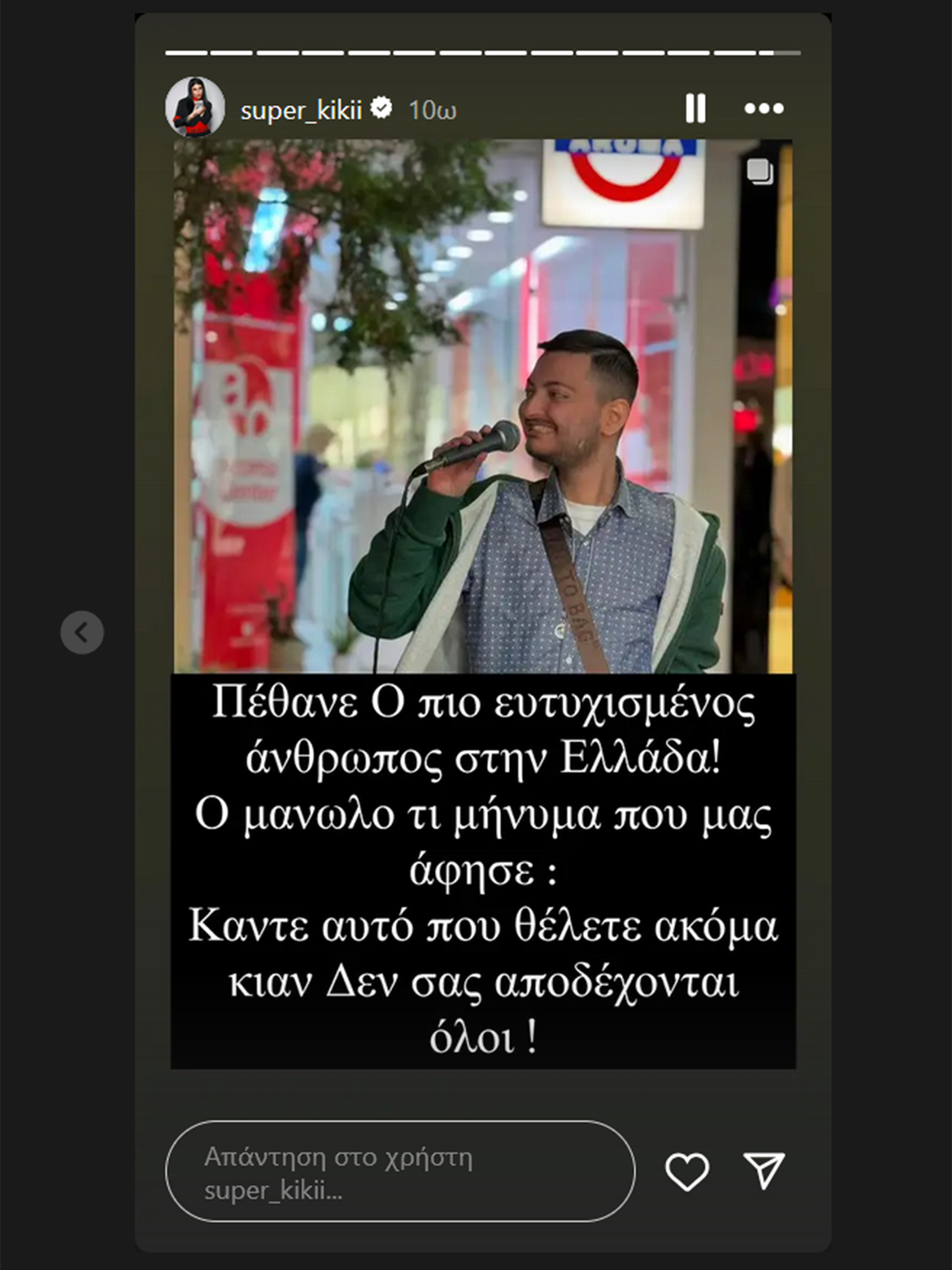 «Δεν περίμενα ποτέ ότι θα έβαζα τέτοιο story για αυτό το παιδί. Εύχομαι να έφυγες χαμογελαστός και ευτυχισμένος όπως σε θυμάμαι! Καλό ταξίδι Μανόλο», έγραψε ο Αλέξανδρος Κοψιάλης.