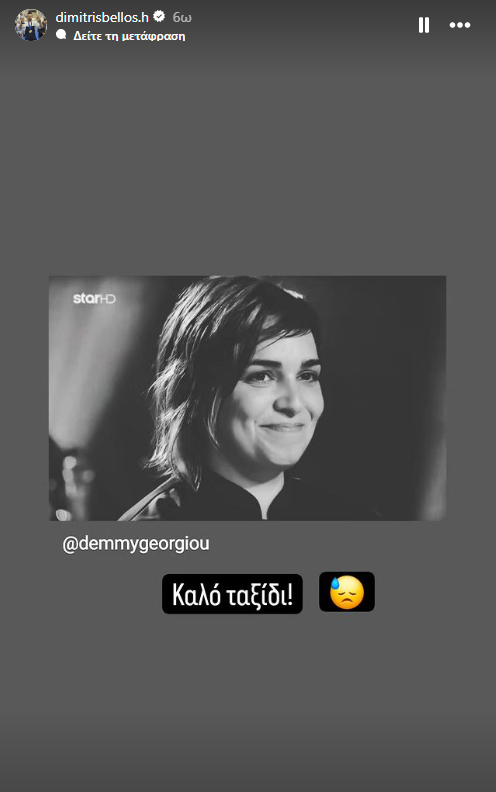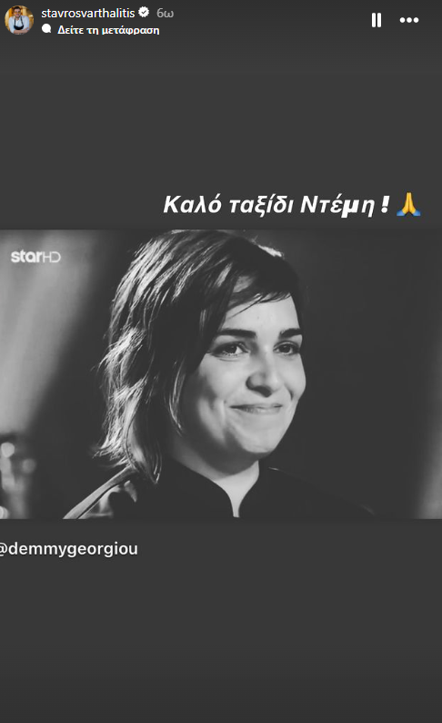 Σταύρος Βαρθαλίτης, Δημήτρης Μπέλλος, Ηρακλής Αποστολίδης, Ηλίας Κιαζόλι, Κωνσταντίνος Νταλιάνης και Σταύρος Γεωργίου, αποχαιρέτησαν την πρώην συμπαίκτριά τους ανεβάζοντας στα stories τους στο Instagram μία φωτογραφία της σεφ γράφοντας: «Καλό Ταξίδι».
