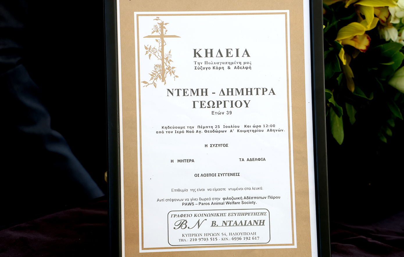 Επιπλέον, έγινε γνωστό πως η Ντέμη Γεωργίου είχε εκφράσει την επιθυμία αντί στεφάνων οι παρευρισκόμενοι να κάνουν δωρεές για τα αδέσποτα ζώα της Πάρου.