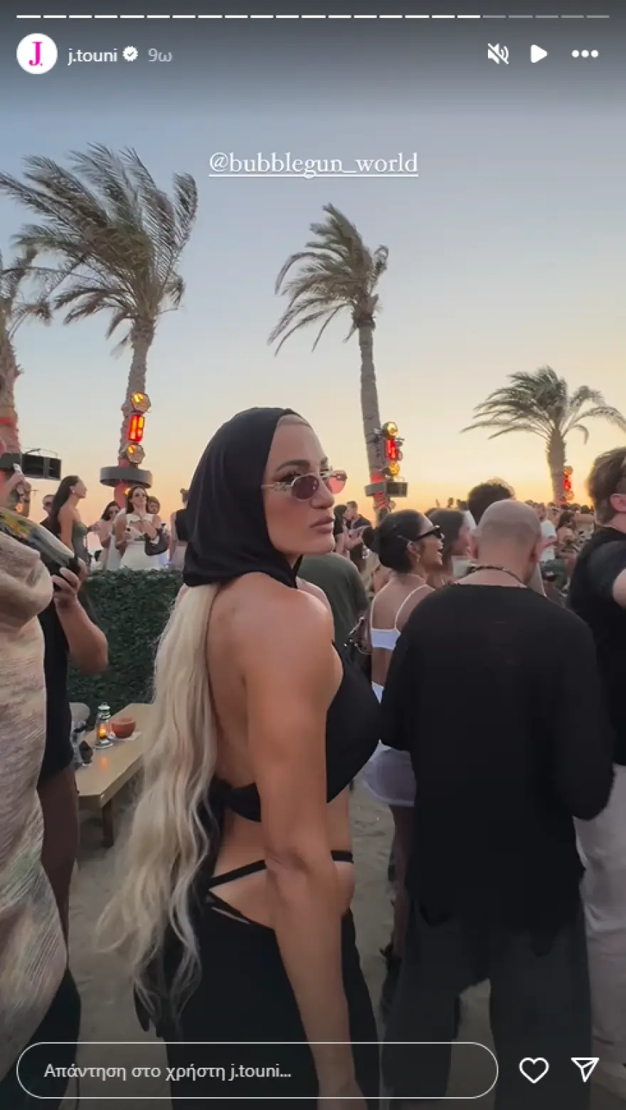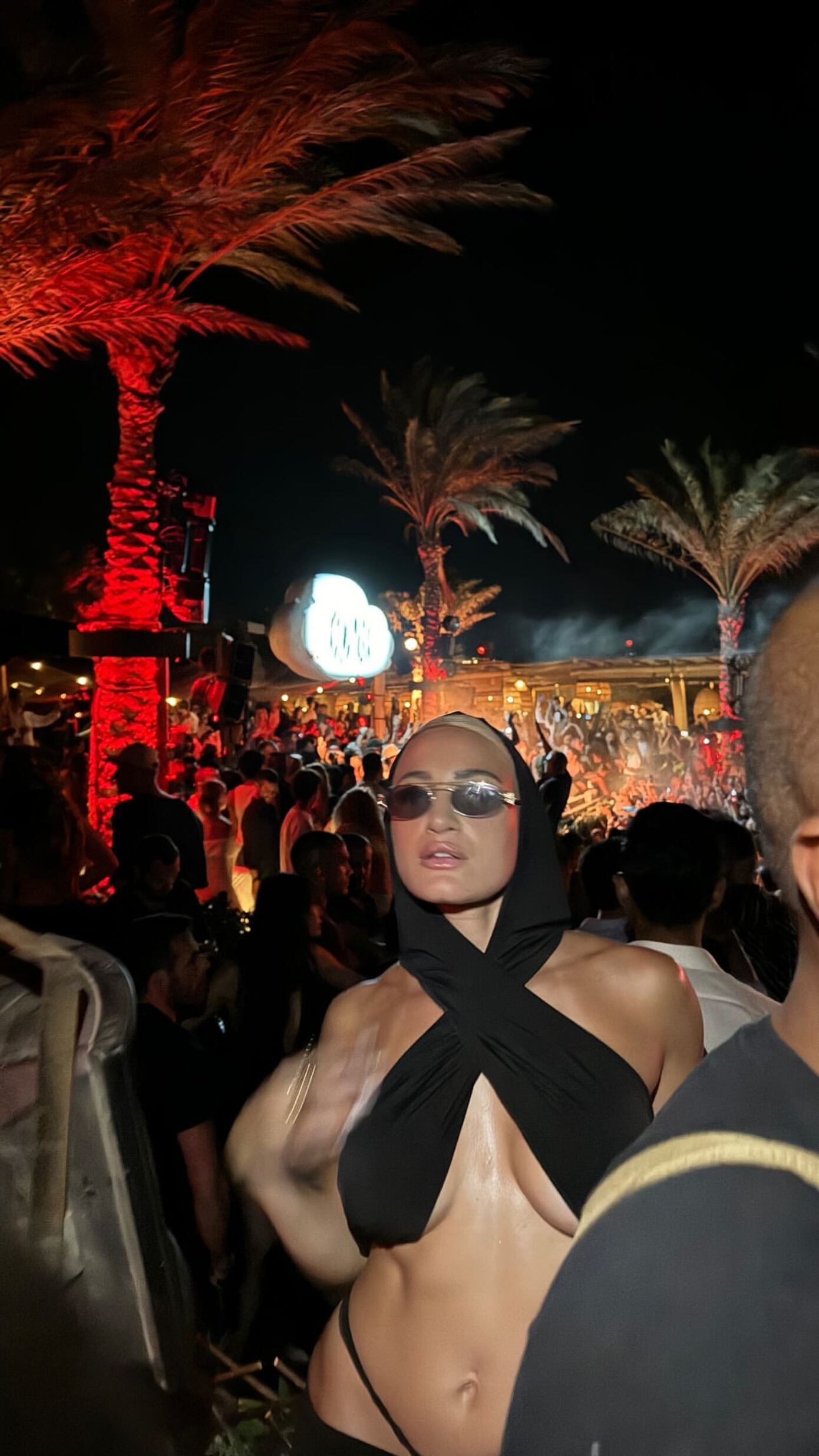 Η γνωστή influencer πήγε στον «Σκορπιό» με τις φίλες της με σκάφος φορώντας μαύρα αποκαλυπτικά ρούχα και ασορτί μαντίλι για τα μαλλιά.