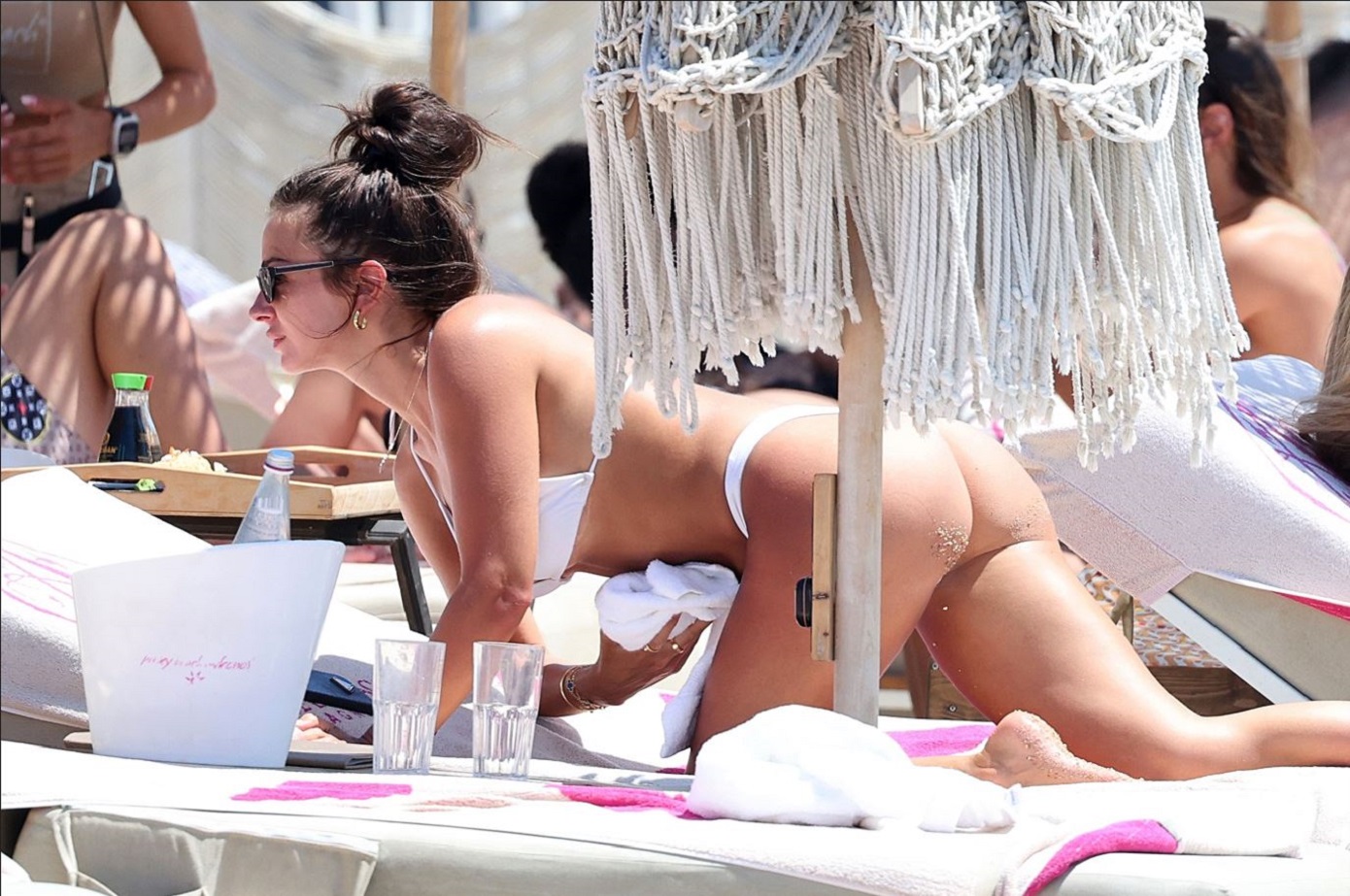 Το μοντέλο και influencer εντοπίστηκε από τους φωτογράφους την ώρα που έκανε ηλιοθεραπεία φορώντας ένα λευκό μικροσκοπικό μπικίνι.