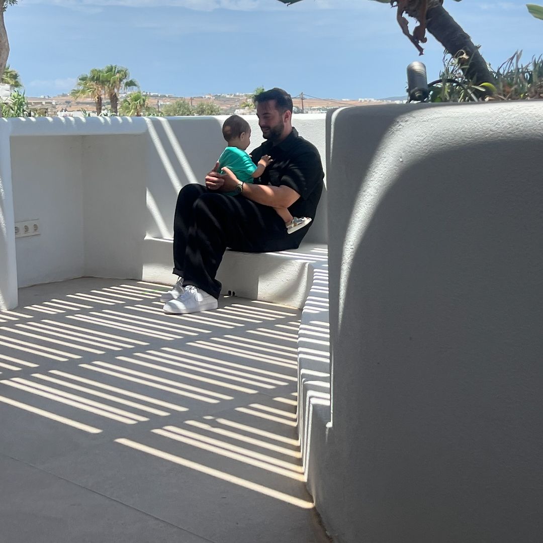 Σε μια άλλη φωτογραφία βλέπουμε τον γιο της, Ερμή, να είναι μαζί με το έναν από τους νονούς του, Πέτρο Τσαπαρδώνη. Να θυμίσουμε ότι η τραγουδίστρια βάφτισε τον γιο της στις 8 Ιουνίου με νονούς την αδελφή της, Ιωάννα Φουρέιρα, τον Πέτρο Τσαπαρδώνη και τον Βασίλη Σιμσιρίκη.