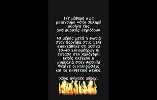 Η Καίτη Γαρμπή έκανε μια ανάρτηση στο Instagram σχετικά με τις πυρκαγιές που καίνε στην βορειοανατολική Αττική.