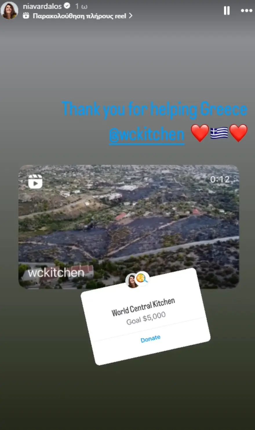 «Σας ευχαριστώ που βοηθάτε την Ελλάδα» σημείωσε η Νία Βαρντάλος σε άλλη ανάρτηση που έκανε στο Instagram.