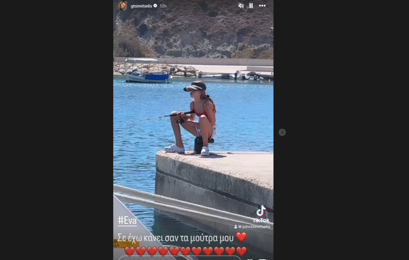 Μια νέα αγαπημένη ασχολία φαίνεται πως έχει η κόρη του Γιάννη Τσιμιτσέλη και της Βάσως Λασκαράκη. Η Εύα ψαρεύει στις διακοπές της με τον πατέρα της, ο οποίος σημείωσε στο προφίλ του στο Instagram: «Σαν τα μούτρα μου την έκανα».