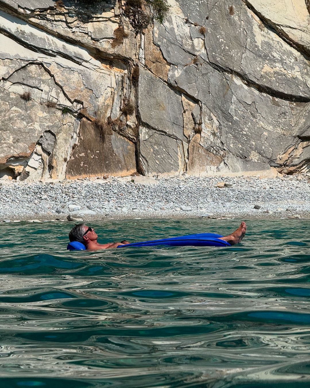 Στην τρίτη φωτογραφία βλέπουμε τον Νίκο Ευαγγελάτο να χαλαρώνει πάνω σε στρώμα θαλάσσης. Στη λεζάντα της δημοσίευσης η Τατιάνα Στεφανίδου έγραψε: «Τελευταία ημέρα στο παράδεισο» και με ένα βίντεο έδειξε τα καταγάλανα νερά μιας υπέροχης παραλίας την οποία επισκέφθηκαν.