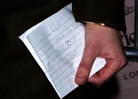 Χωρίς να ξέρουμε τι ακριβώς λέει μέσα στο γράμμα ο θαυμαστής, στην εξωτερική σελίδα δηλώνει: Γεια σου, στο υπόσχομαι δεν είμαι ψυχάκιας ! Άνοιξε το γράμμα!».