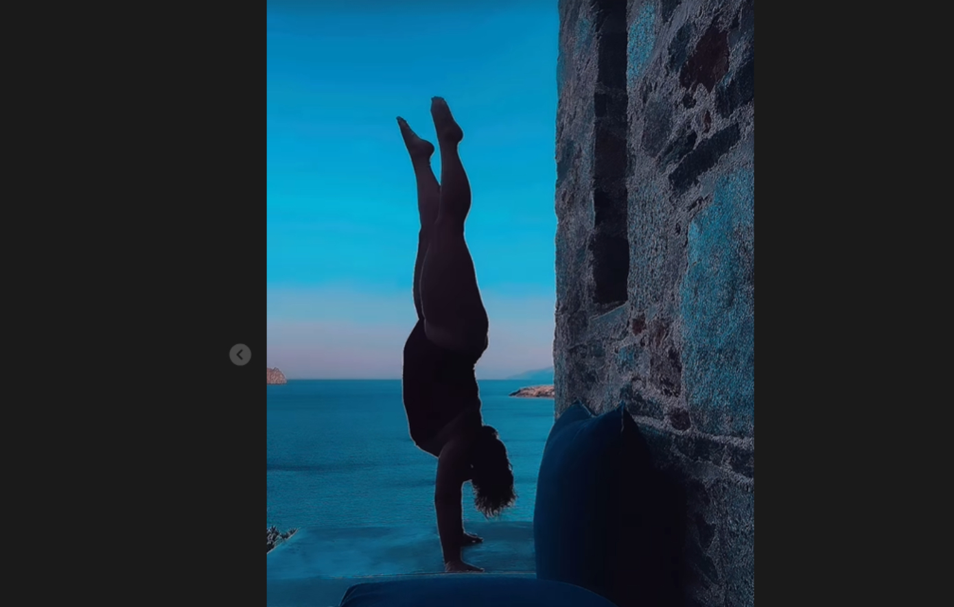 Σε ένα story που ανέβασε το βράδυ της Πέμπτης 22 Αυγούστου, η Δάνη Μπάρκα κατέγραψε τον εαυτό της να κάνει κατακόρυφο σε ένα τοίχο φορώντας το μαγιό της.