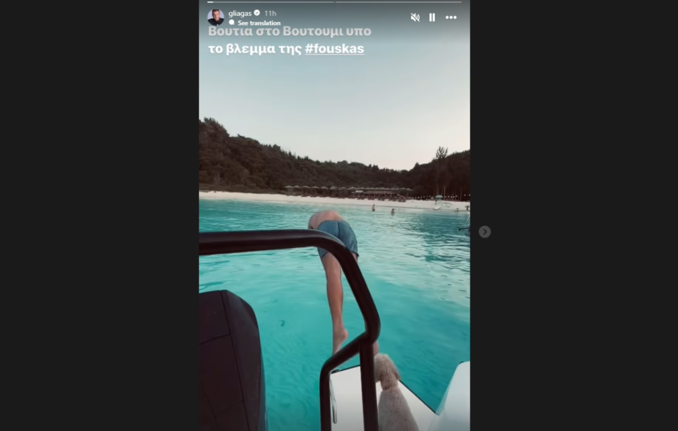 O Γιώργος Λιάγκας δημοσίευσε και εκείνος βίντεο στα Instagram Stories του από τις διακοπές του στους Παξούς, όπου έκανε μια βουτιά στην παραλία «Βουτούμι».