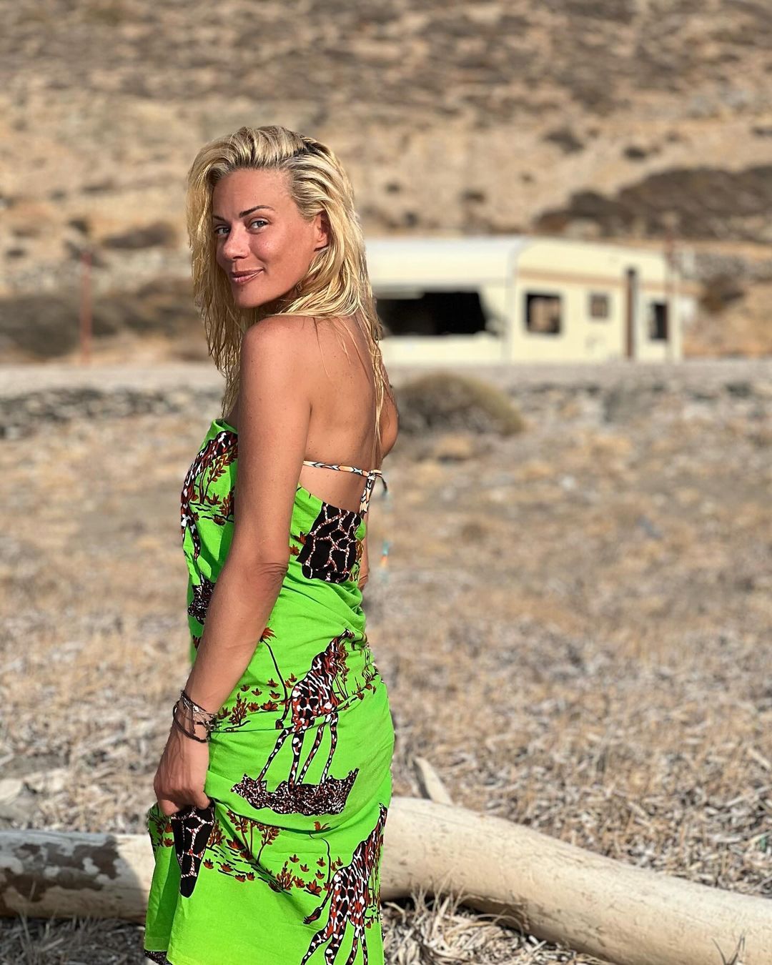 Η ηθοποιός και παρουσιάστρια δημοσιεύσε στο προφίλ της στο Instagram φωτογραφίες της, στις οποίες ποζάρει φορώντας ένα καφτάνι σε πράσινο χρώμα. «Δεν ήρθα με το τροχόσπιτο, αλλά πολύ θα ήθελα να φύγω μ’αυτό! Δυο μερεμέτια θέλει και είναι έτοιμο. Προς το παρόν είπα να βγάλω 1,2 τρεις, πέντε, δεκαπέντε φωτογραφίες, στα διαλείμματα από τις βουτιές!» σημείωσε η ίδια στη λεζάντα της ανάρτησης.