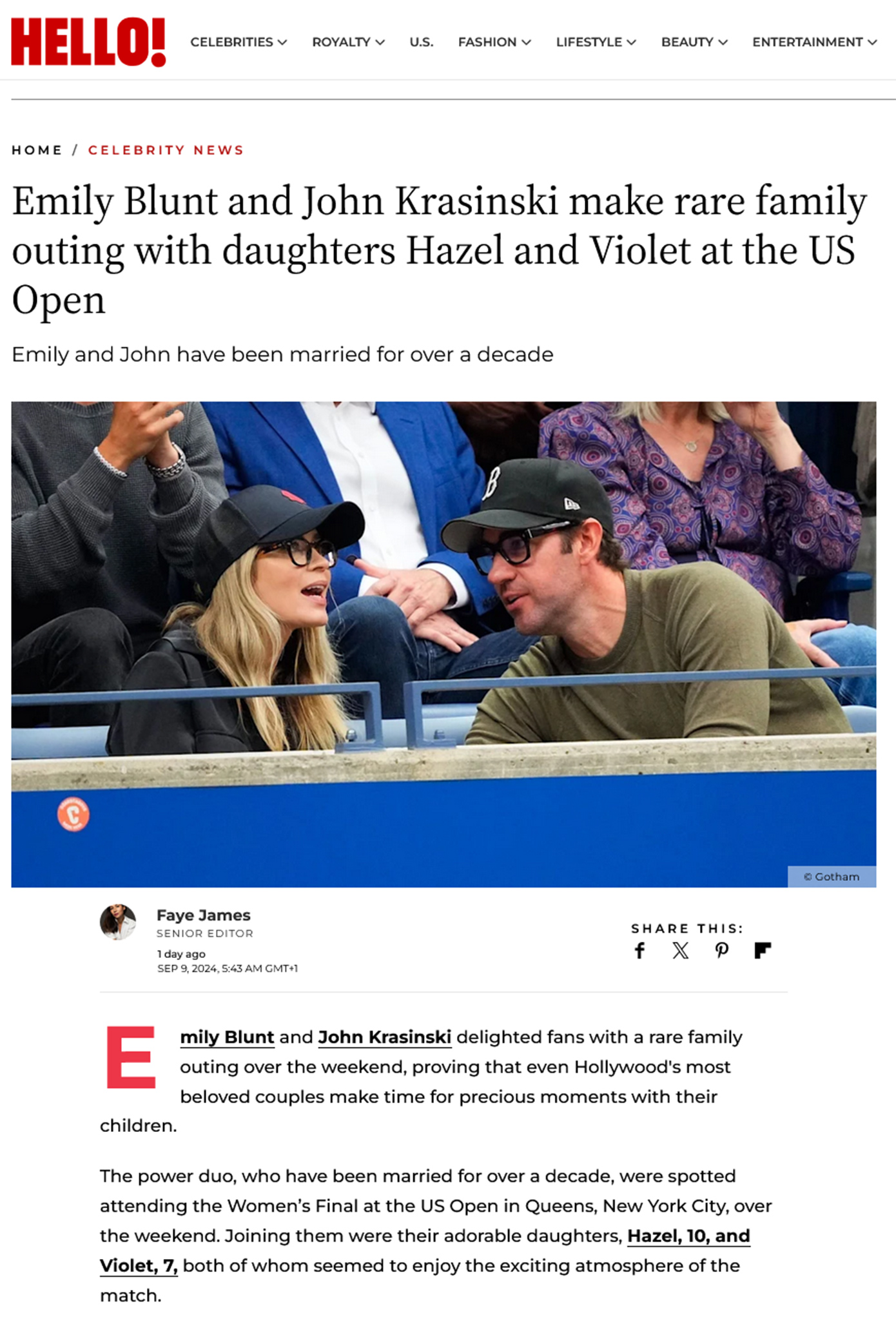 Η Emily Blunt και ο John Krasinski ενθουσίασαν τους θαυμαστές τους με μια σπάνια οικογενειακή έξοδο στο US Open, αποδεικνύοντας ότι ακόμη και τα πιο αγαπημένα ζευγάρια του Χόλιγουντ βρίσκουν χρόνο για πολύτιμες στιγμές με τα παιδιά τους.