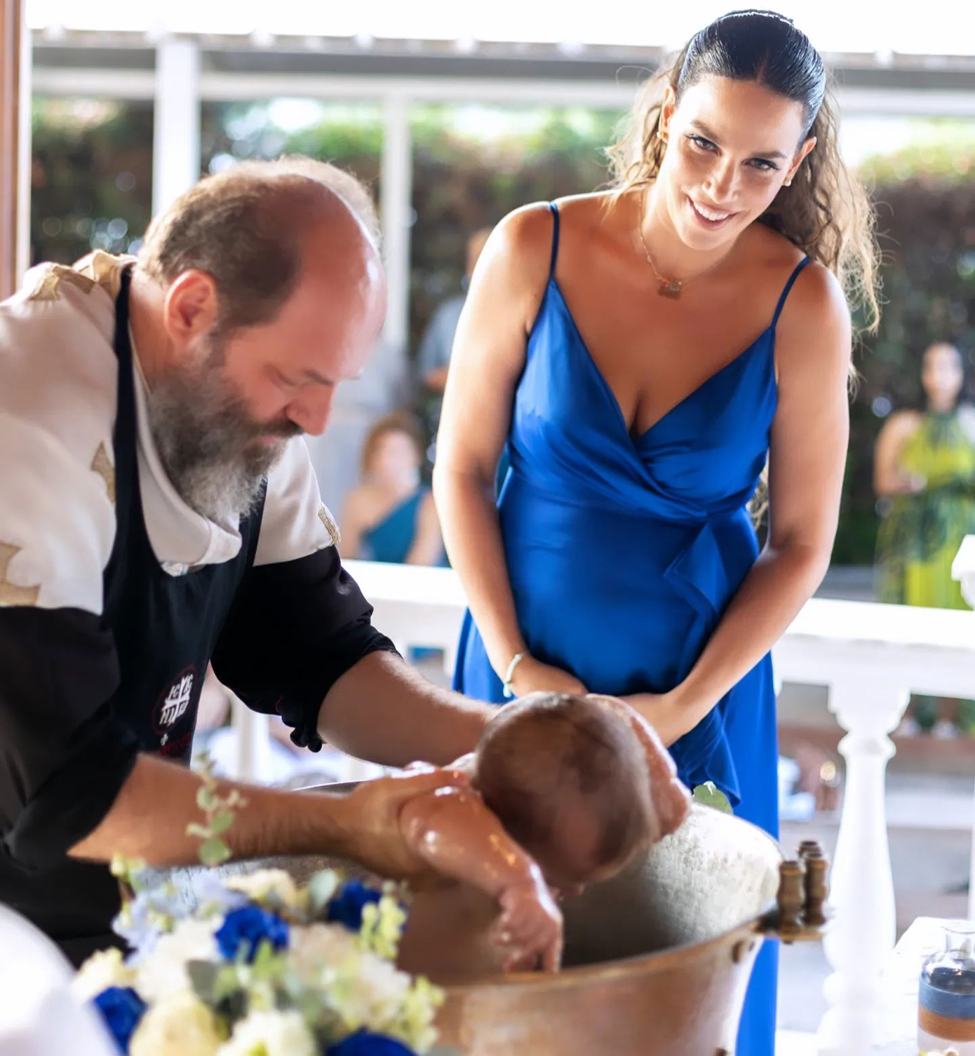 Ανάμεσα στις φωτογραφίες της βάπτισης, ξεχώρισε αυτή με τη μητέρα της. Μητέρα και κόρη πόζαραν αγαπημένες στον φωτογραφικό φακό φορώντας μπλε φορέματα.