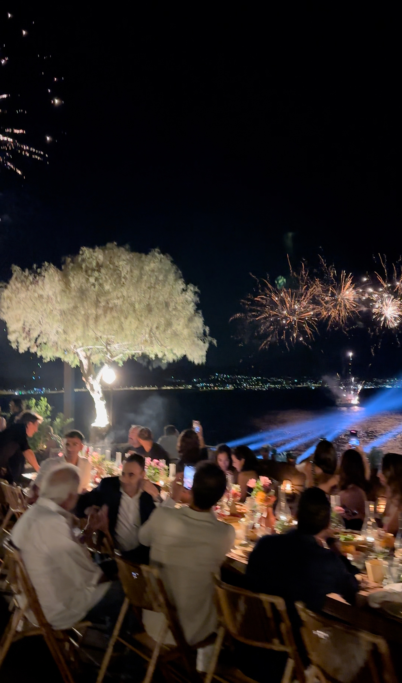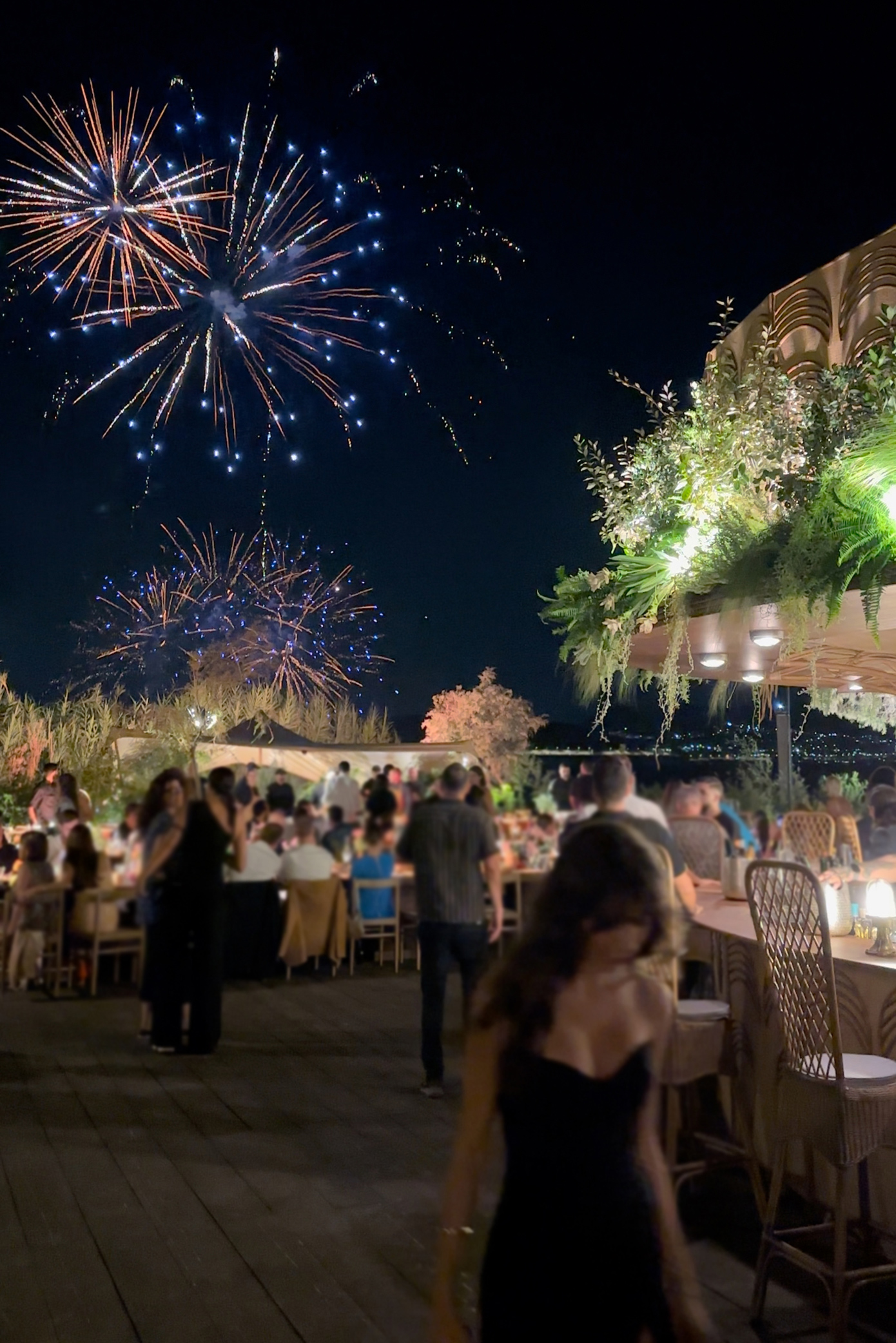 Η Ναόμι Κάμπελ ευδιάθετη και χαμογελαστή, χόρευε συνεχώς ενώ απόλαυσε τα πυροτεχνήματα που έλουσαν τον ουρανό από δύο διαφορετικά ειδικά σκάφη μέσα στη θάλασσα και η βραδιά δεν θα μπορούσε να χαρακτηριστεί τίποτα άλλο παρά μαγική.