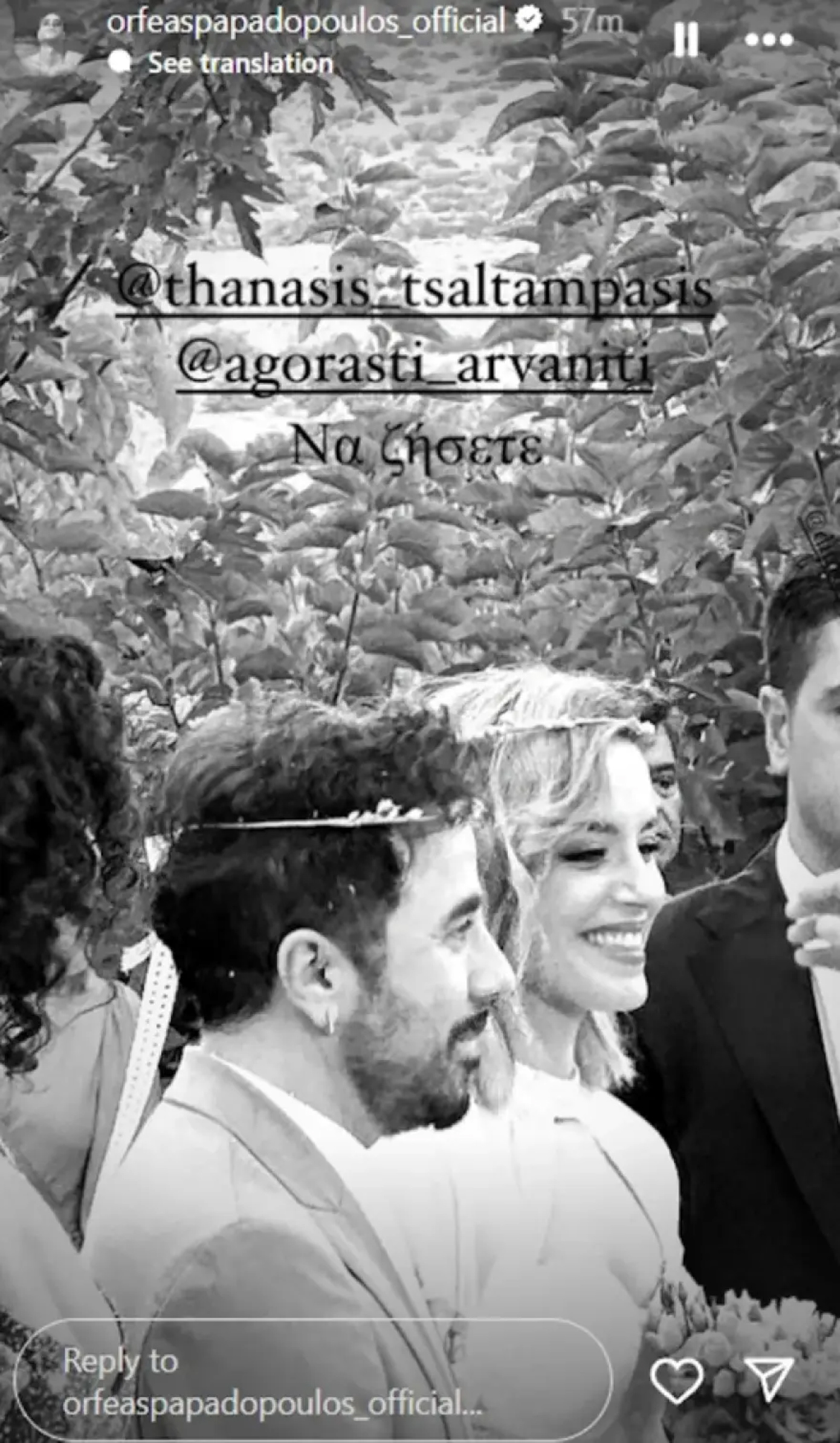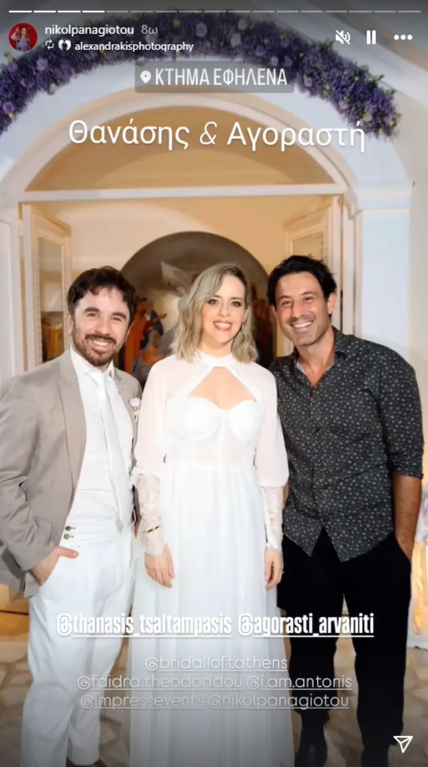 Η Ντορέττα Παπαδημητρίου, ο Ορφέας Παπαδόπουλος και η Νικόλ Παναγιώτου, που ήταν καλεσμένοι ανέβασαν φωτογραφίες από την τελετή στα social media, γνωστοποιώντας το χαρμόσυνο γεγονός.