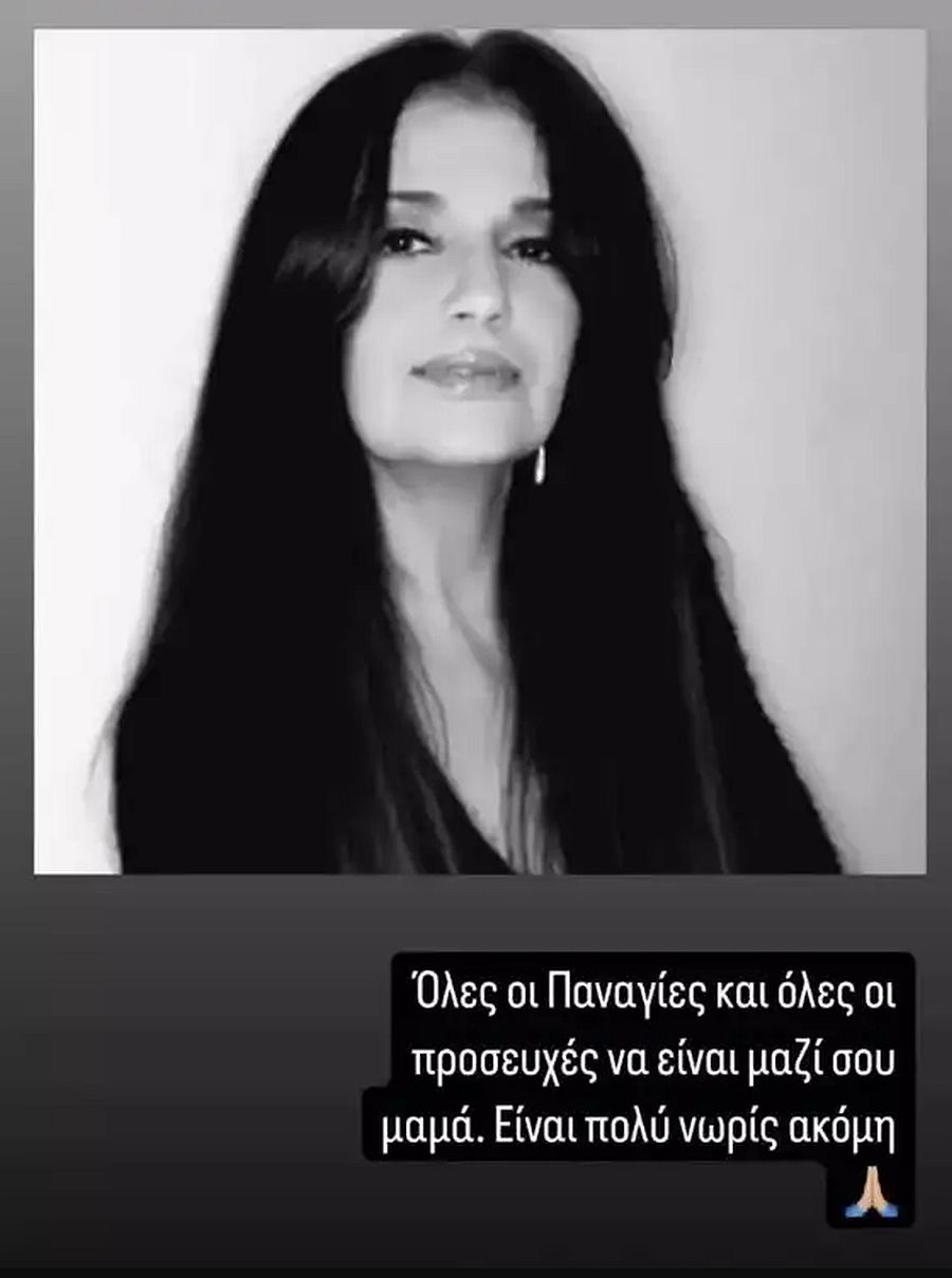 «Όλες οι Παναγίες και όλες οι προσευχές να είναι μαζί σου μαμά. Είναι πολύ νωρίς ακόμη» είχε γράψει χαρακτηριστικά η Μαρία Αντωνά σε εκείνη την ιστορία που δημοσίευσε στον προσωπικό της λογαριασμό στο Instagram.