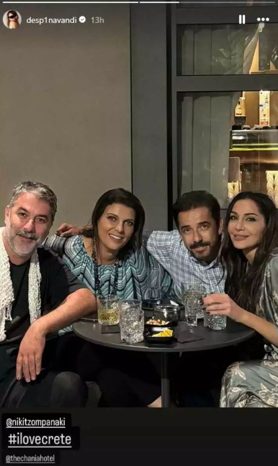 Στην ανάρτηση της Δέσποινας Βανδή στο προφίλ της στο Instagram, ο Βασίλης Μπισμπίκης φαίνεται χαμογελαστός, φορώντας το παραδοσιακό κρητικό μαντήλι που συνηθίζεται να φορούν οι νονοί στην Κρήτη.