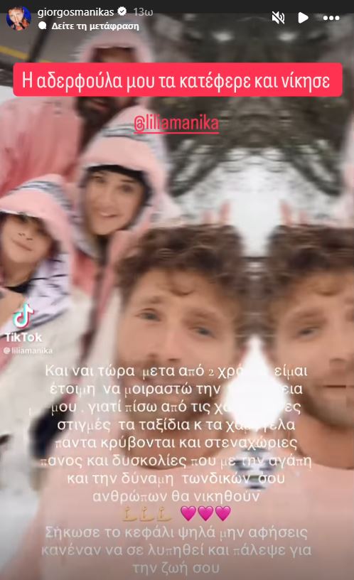 Την ανάρτησή της αναδημοσίευσε ο Γιώργος Μανίκας στον λογαριασμό του στο Instagram γράφοντας: