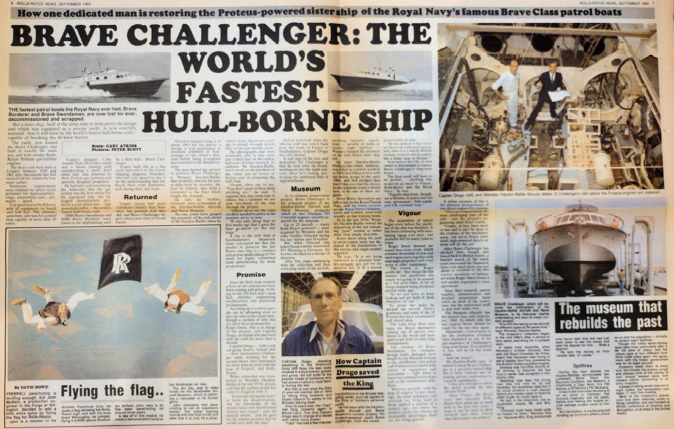 Ταυτόχρονα είναι και το μόνο σωζόμενο παράδειγμα του σχεδίου «Brave Class» των γρήγορων σκαφών που κατασκευάστηκε από τη Vosper LTD στο Πόρτσμουθ το 1961 μαζί με τα περιπολικά σκάφη του Βασιλικού Ναυτικού που τέθηκαν στην υπηρεσία της Αυτού Μεγαλειότητος και του Στέμματος: «Brave Borderer» και «Brave Swordsman». Μάλιστα το «Brave Challenger» όπως ήταν το αρχικό του όνομα κατασκευάστηκε με την ειδική συγκατάθεση του Ναυαρχείου και του Βασιλικού Ναυτικού, για να ολοκληρωθεί και να εξοπλιστεί στις απαιτήσεις και τις ανάγκες του έλληνα μεγιστάνα και να μετονομαστεί σε «Mercury»!