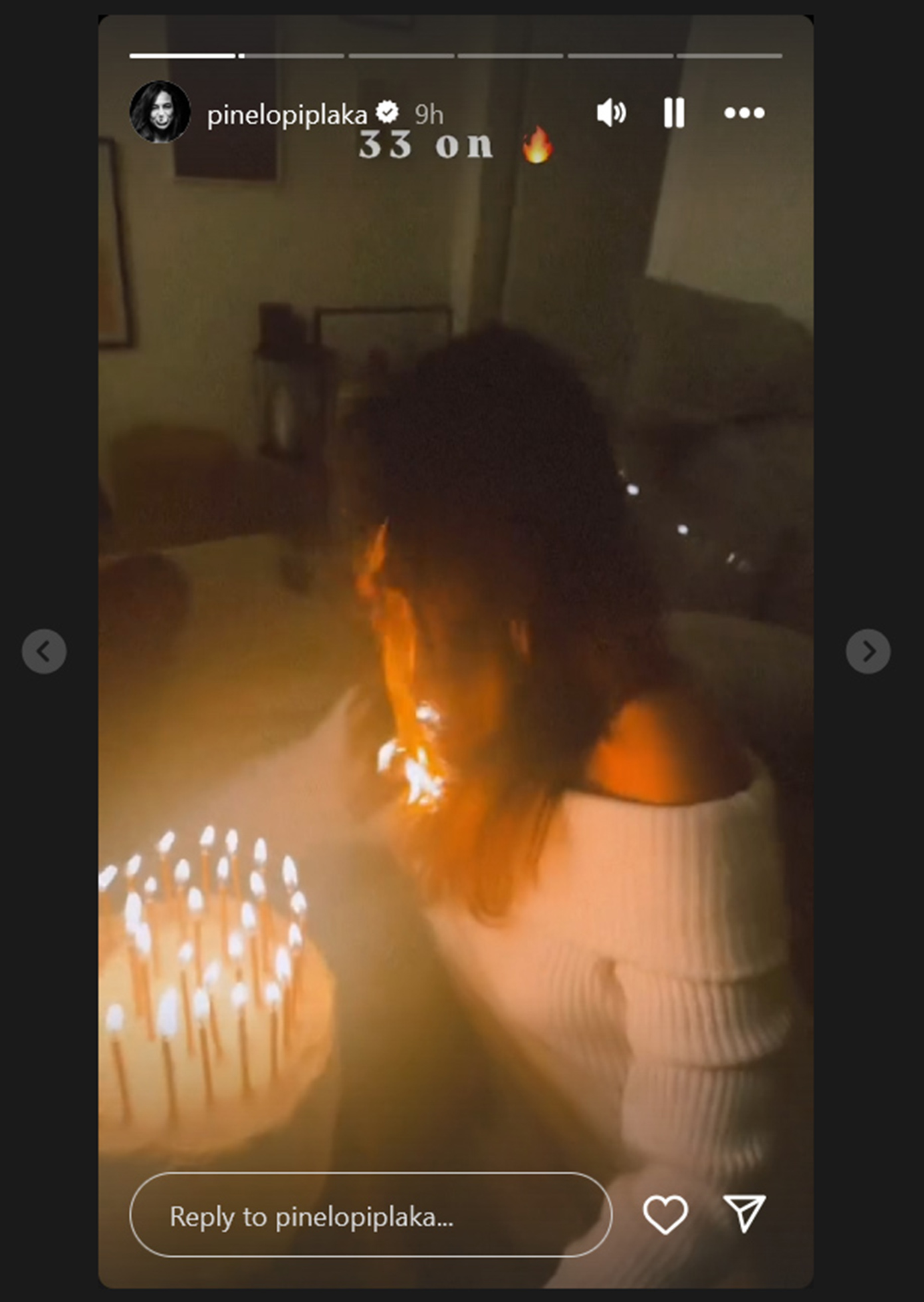 Πιο συγκεκριμένα, η ηθοποιός οργάνωσε ένα πάρτι στο σπίτι της, όπου έσβησε τα κεράκια για τα 33α γενέθλιά της. Ωστόσο, τη στιγμή που πήγε να σβήσει τα κεράκια της τούρτας της, άρπαξαν τα μαλλιά της φωτιά! Η ηθοποιός απομακρύνθηκε από την τούρτα και έσβησε τη φωτιά από τα μαλλιά της.