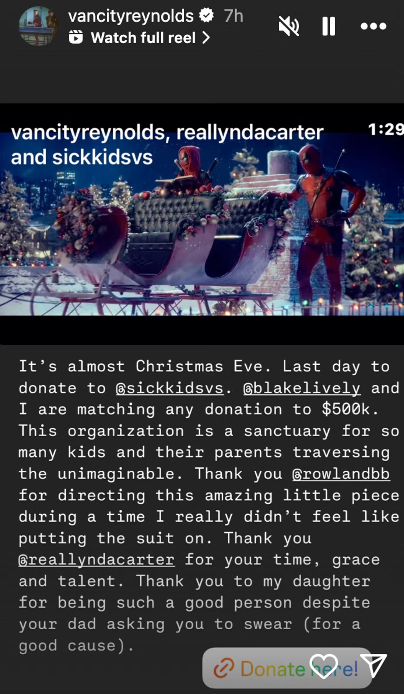 Ο Ράιαν Ρέινολντς επανέλαβε τον ρόλο του Deadpool στην πρώτη του ανάρτηση από τότε που η σύζυγός του, ηθοποιός Μπλέικ Λάιβλι κατέθεσε μήνυση κατηγορώντας τον Τζάστιν Μπαλντόνι για σεξουαλική παρενόχληση.