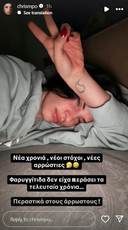 Συγκεκριμένα, η Χριστίνα Μπόμπα ανήρτησε ένα στιγμιότυπο όπου αναφέρει πως περνά για πρώτη φορά φαρυγγίτιδα και πως το 2025 τη βρήκε άρρωστη.