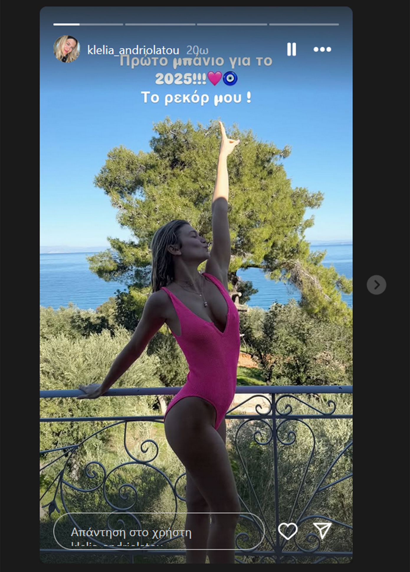 Η Κλέλια Ανδριολάτου ξεκίνησε τη χρονιά επιστρέφοντας στις αγαπημένες της παραλίες, μοιράζοντας στιγμιότυπα από το πρώτο της μπάνιο για το 2025.