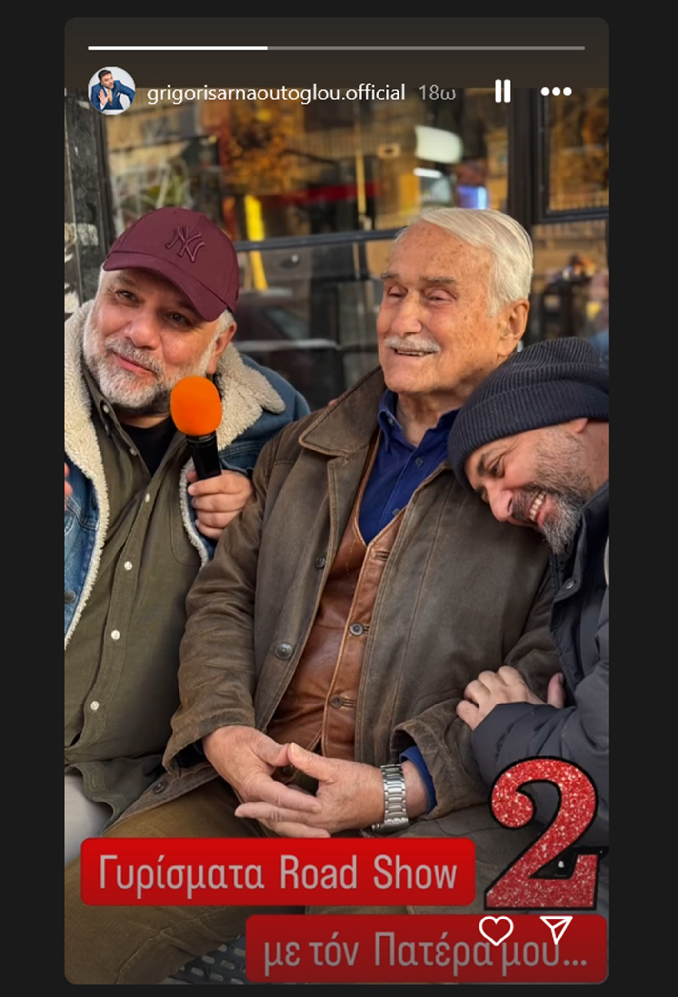 Μια ιδιαίτερη έκπληξη για τη νέα σεζόν είναι η εμφάνιση του πατέρα του, Αναστάσιου Αρναούτογλου, στην εκπομπή. Ο Γρηγόρης μοιράστηκε στο Instagram μια φωτογραφία όπου ποζάρει μαζί του, συνοδεύοντας τη με τη φράση: «Γυρίσματα Roadshow 2 με τον πατέρα μου».
