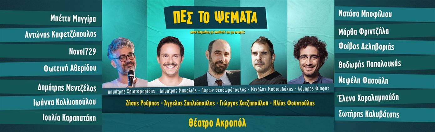 Στην παράσταση «Πες το ψέματα», την παρουσίαση και την αρχισυνταξία του οποίου υπογράφει ο κωμικός Βύρωνας Θεοδωρόπουλος, ανάμεσα σε συνολικά 17 συμμετέχοντες, κωμικούς και καλεσμένους, δεν βρισκόταν αρχικά ούτε μία γυναίκα.