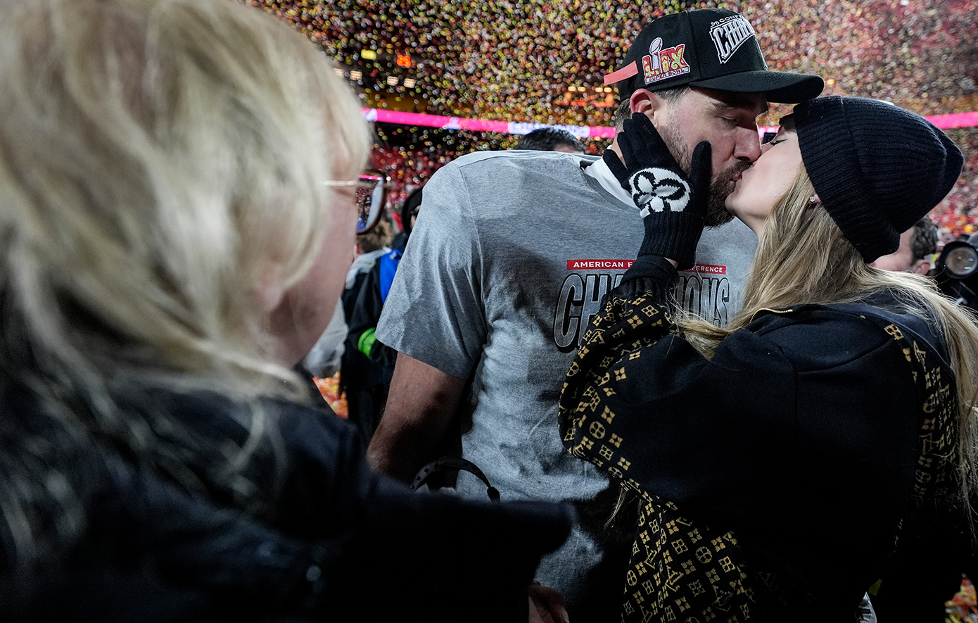 Όπως αναφέρει δημοσίευμα της New York Post, λίγο αφότου οι Kansas City Chiefs επικράτησαν των Buffalo Bills με 32-29 στον αγώνα του AFC Championship στο Arrowhead Stadium, ο αστέρας της ομάδας αντάμωσε την ποπ σούπερ σταρ στον αγωνιστικό χώρο, ανταλλάσσοντας ένα φιλί. Το ζευγάρι, που είναι μαζί από το 2023, είχε μια παρόμοια στιγμή πέρσι τον Ιανουάριο, όταν οι Chiefs νίκησαν τους Ravens στη Βαλτιμόρη, στον δρόμο για τη νίκη τους στο «Super Bowl» απέναντι στους 49ers.